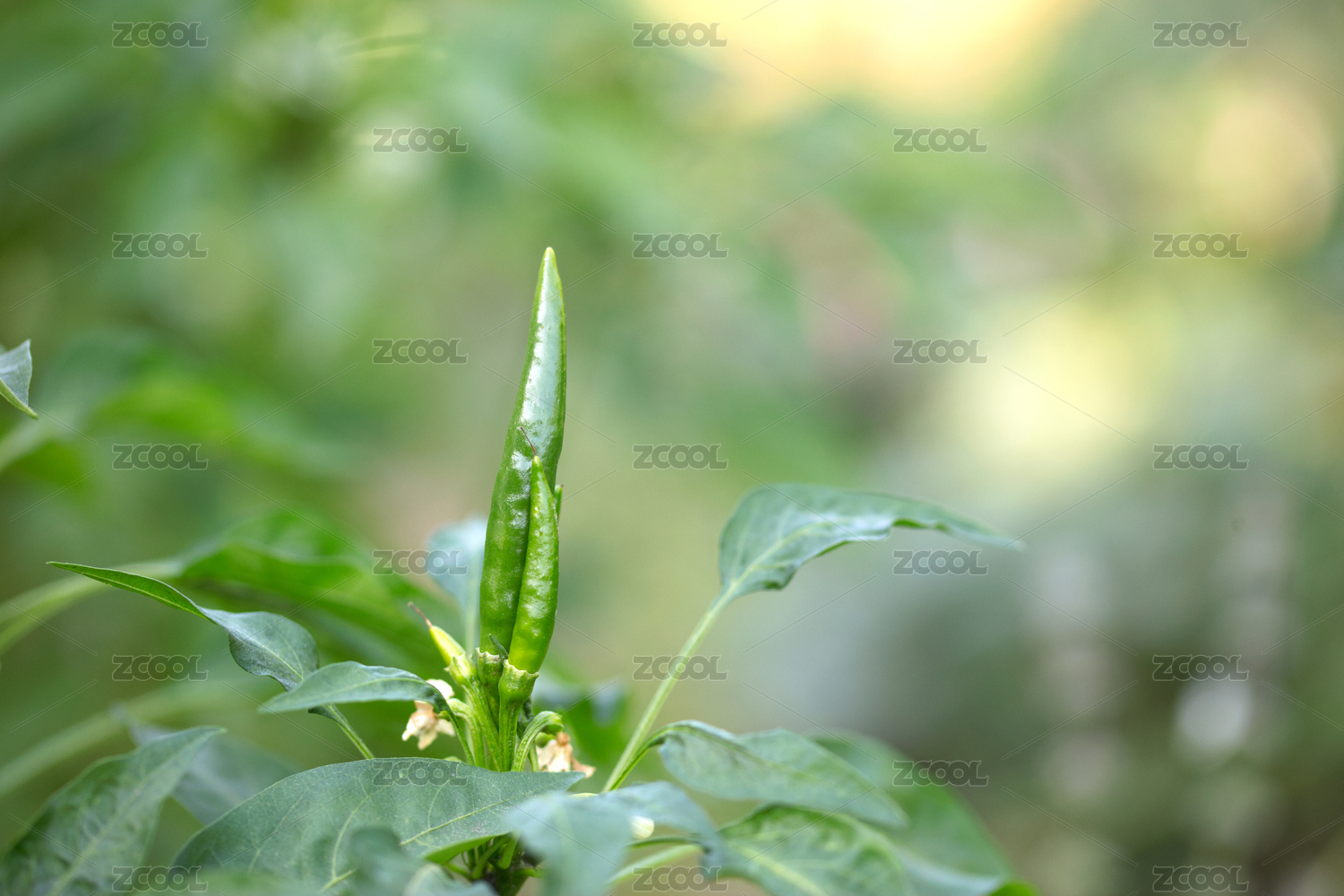 嫩绿的朝天椒生长在枝头