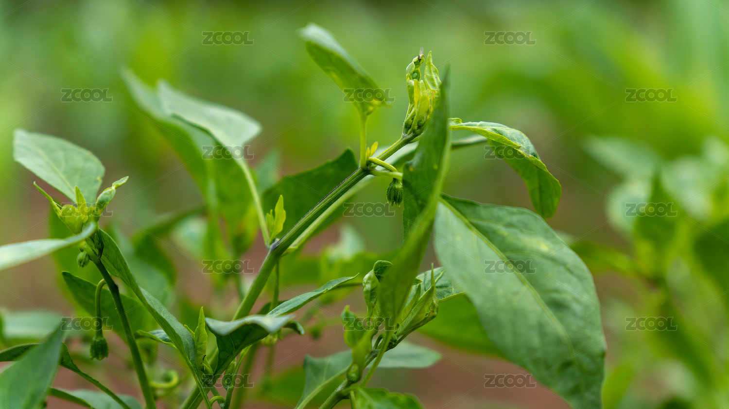 辣椒秧枝头开放的小碎花和幼小的辣椒