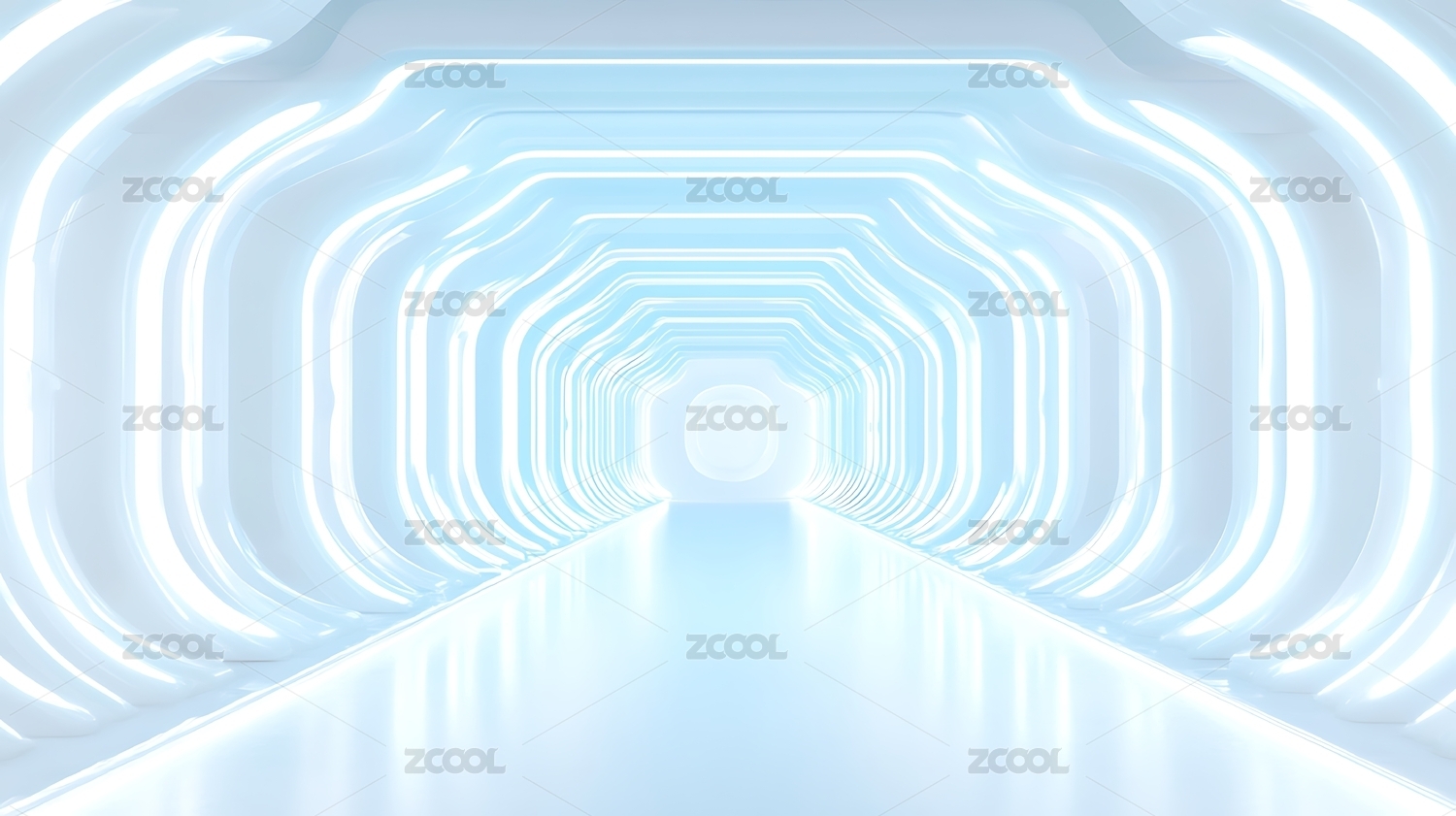 白色科技感走廊纵深延伸视觉效果