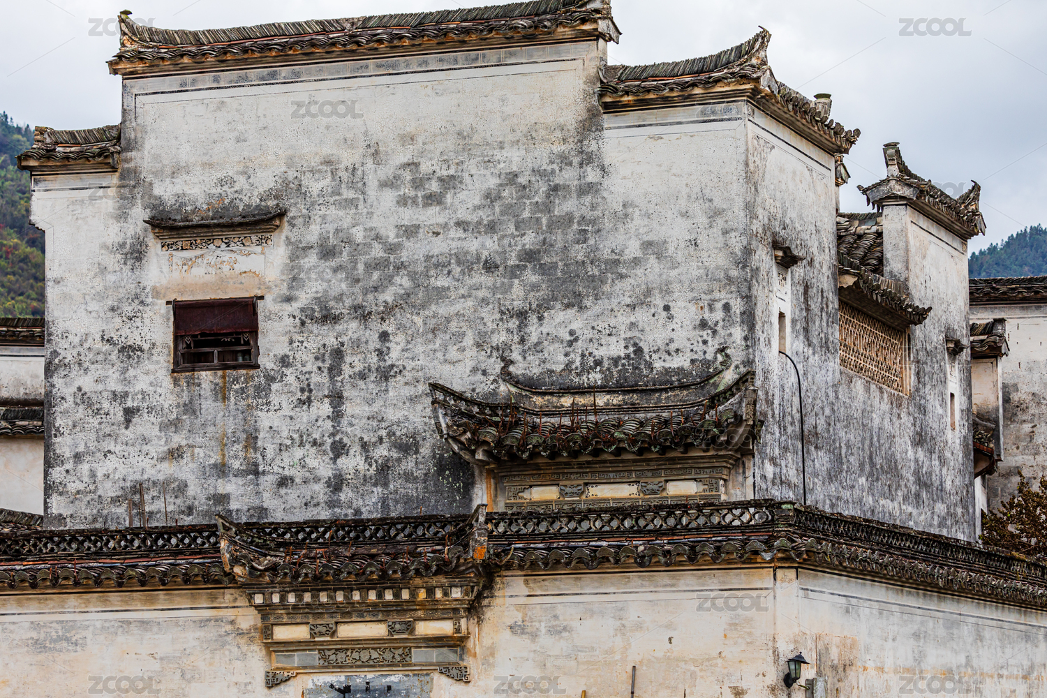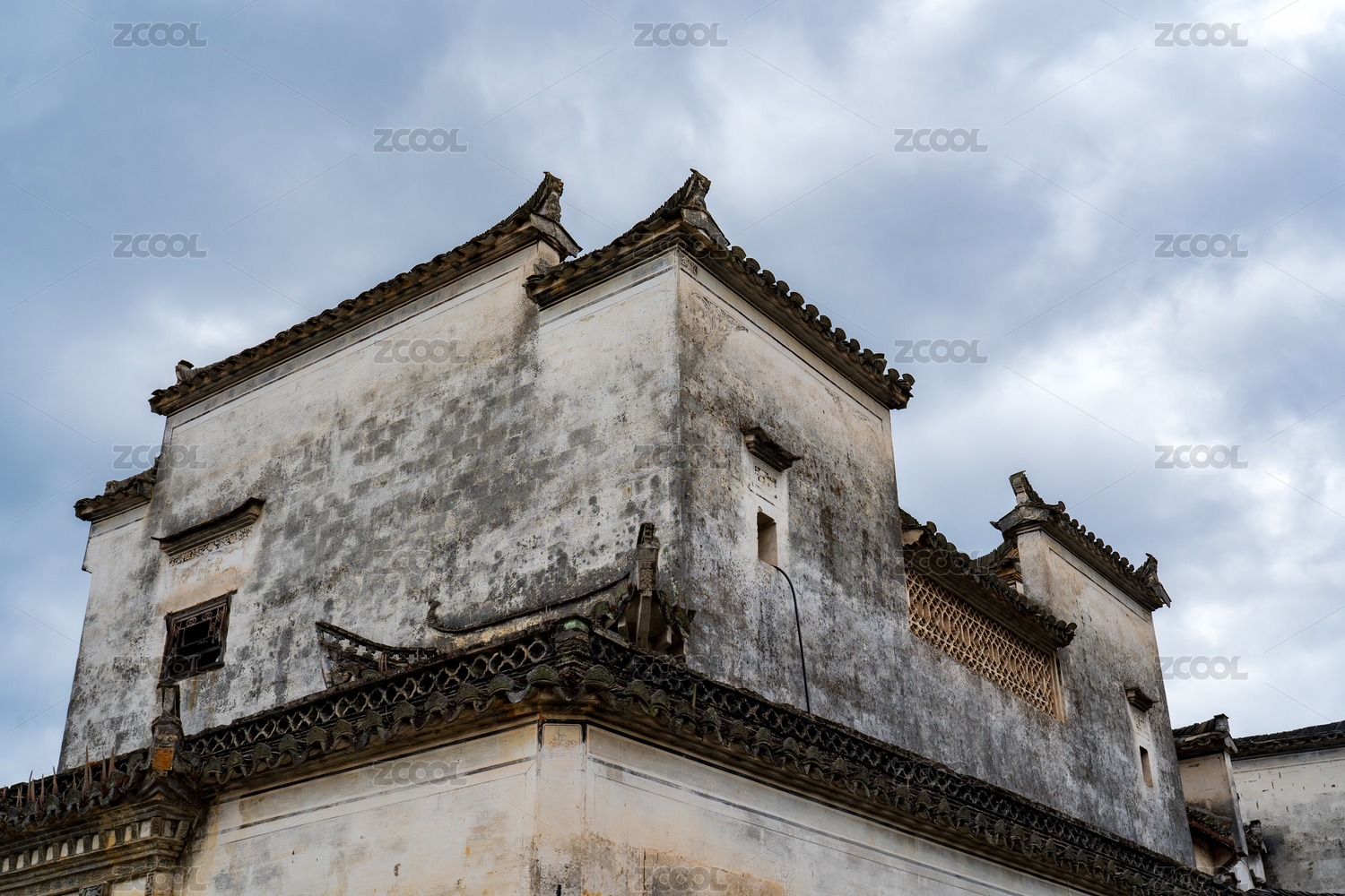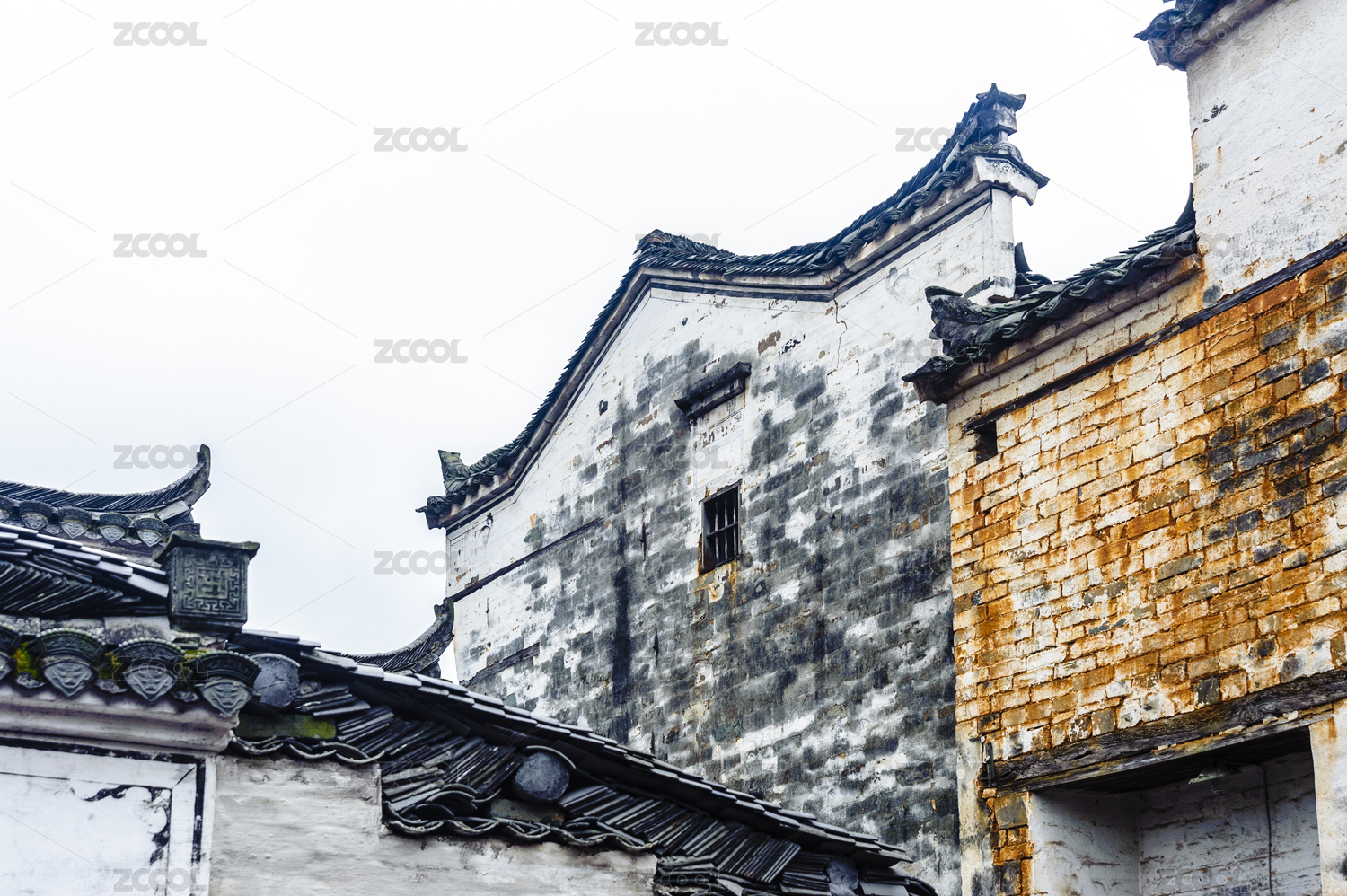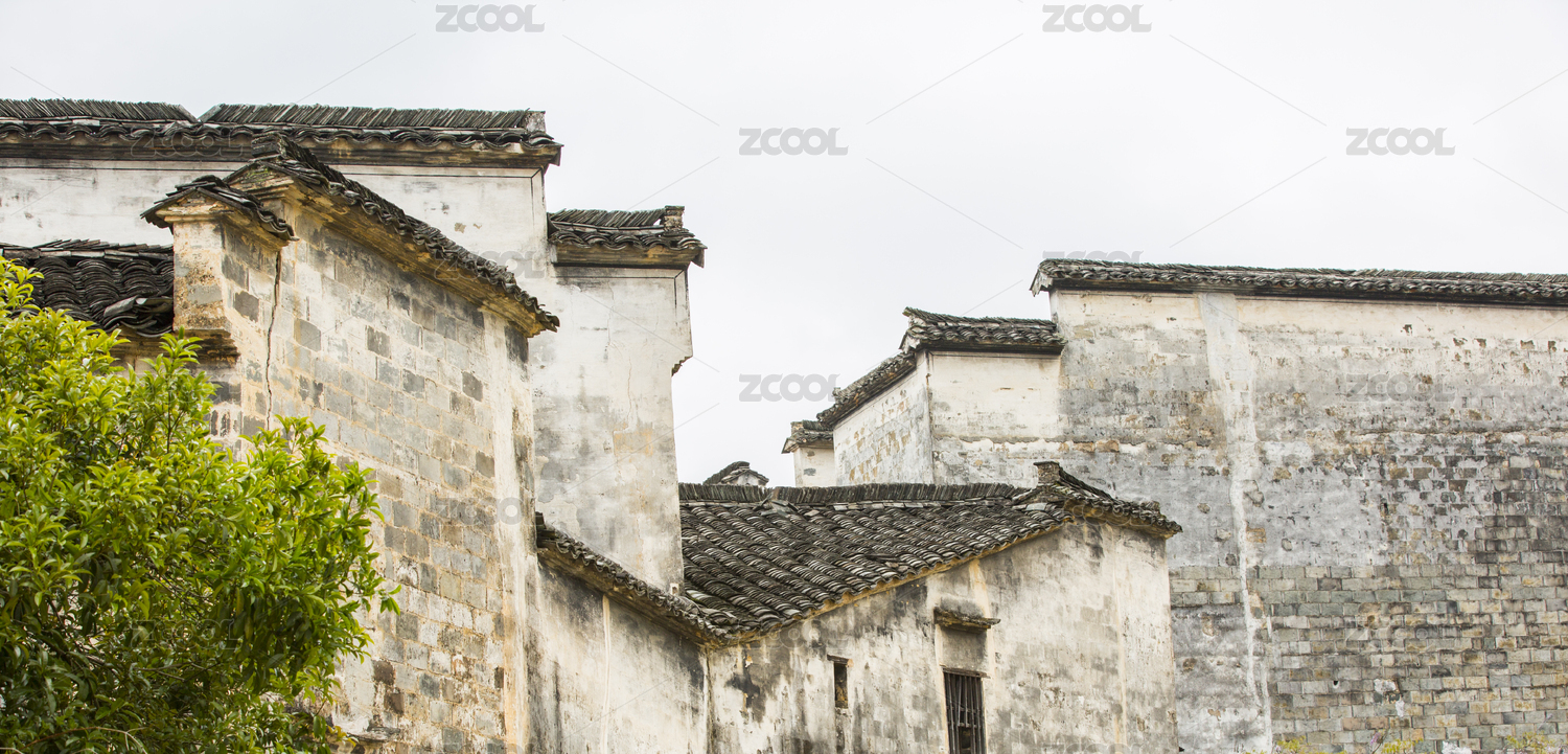 中国安徽皖南徽派建筑民居青砖黑瓦白墙马头墙