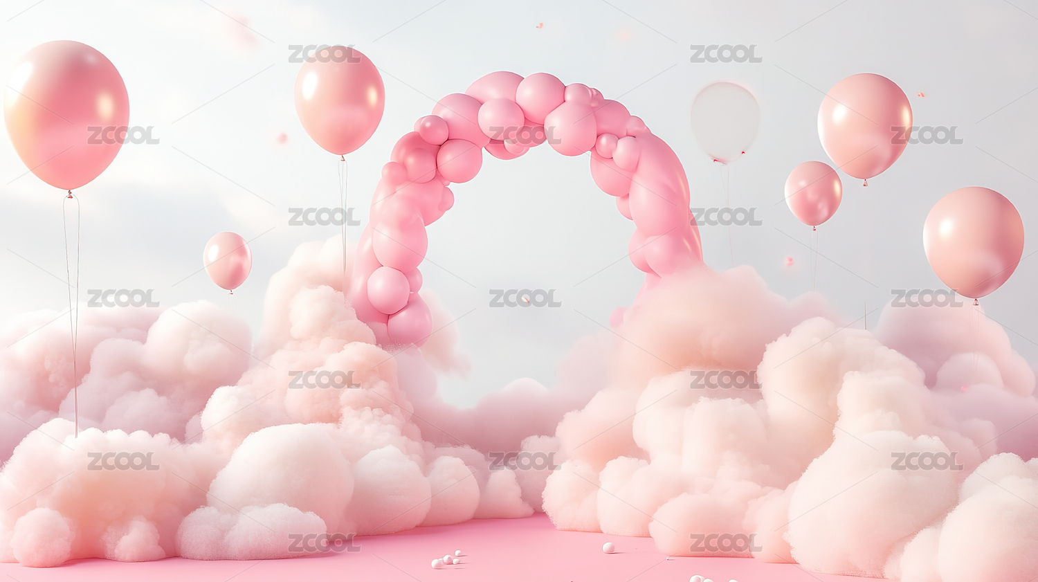 蓝天白云充气花朵和气球的拱门3D卡通背景