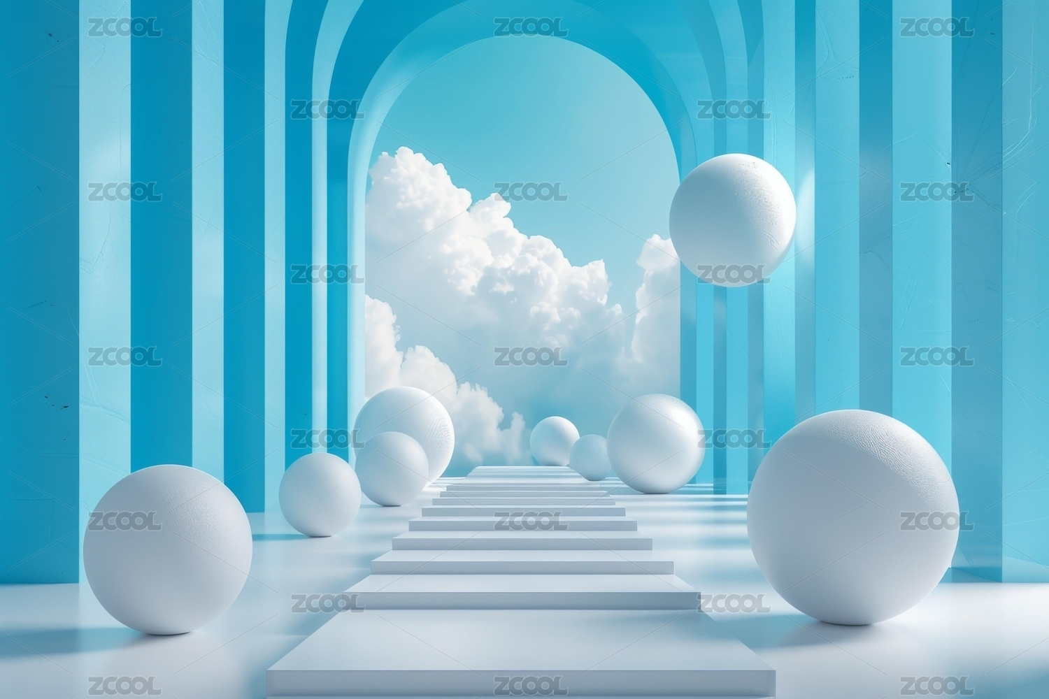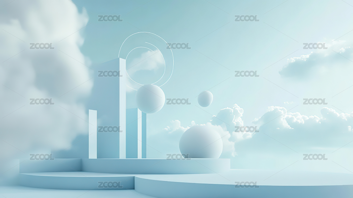 梦幻蓝天白云展示台