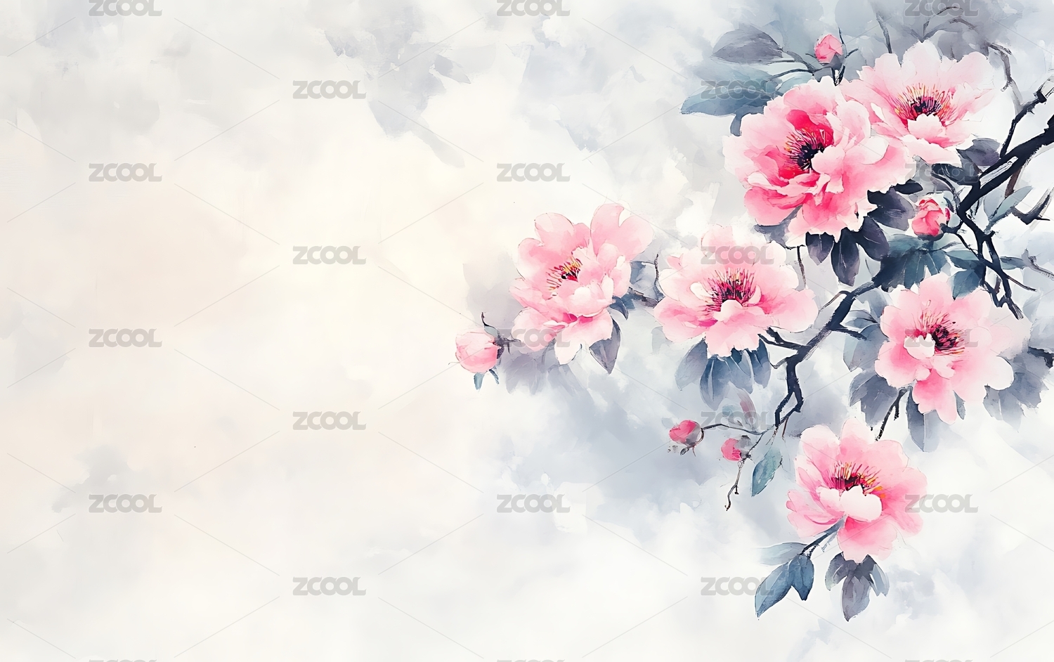 水墨风牡丹