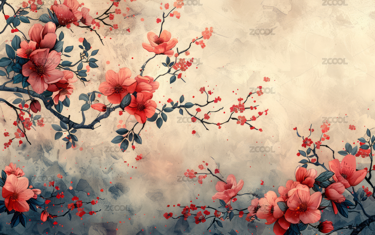 复古的中国风花卉主题艺术背景