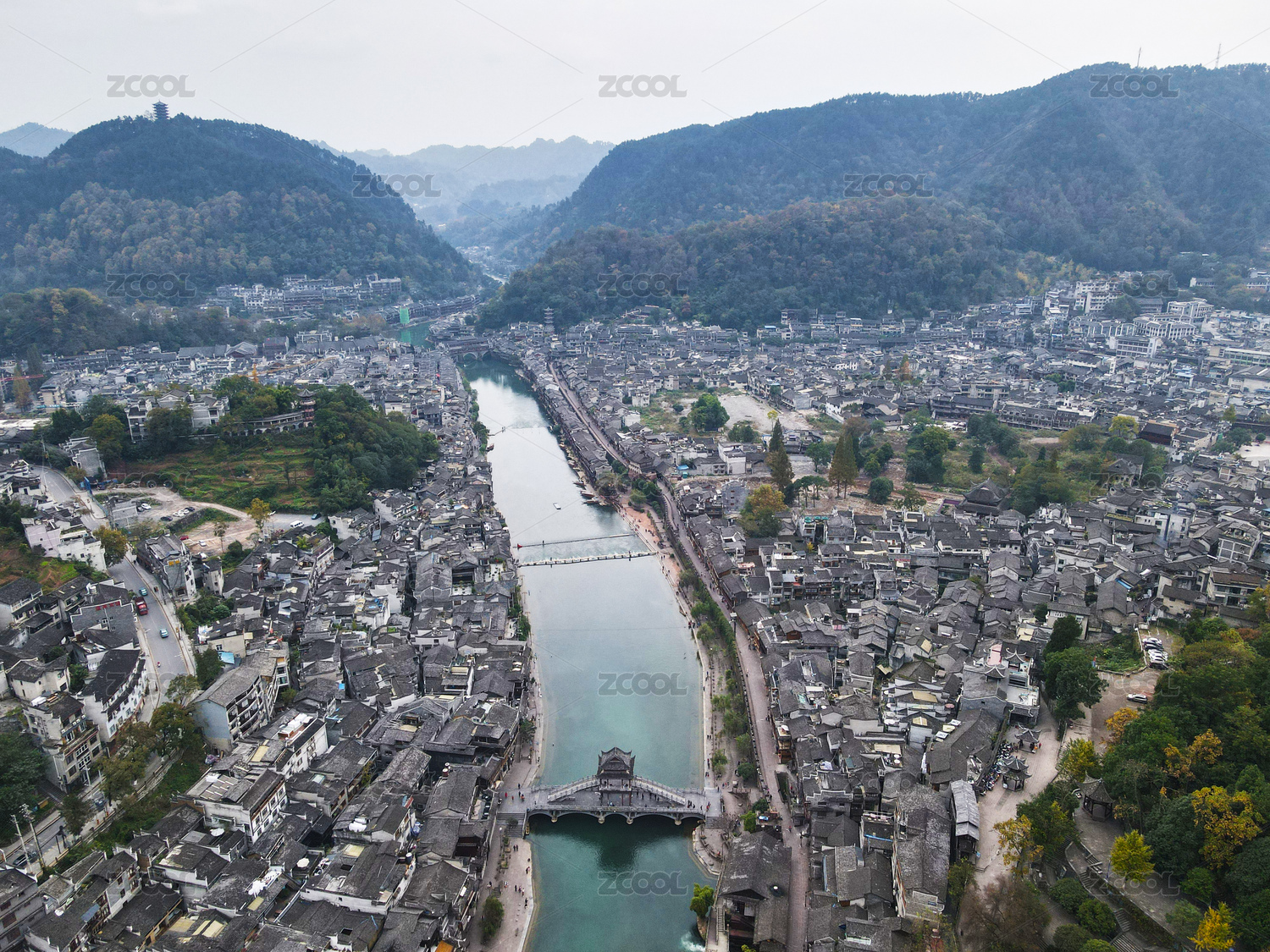 中国湖南省湘西州凤凰县凤凰古城航拍