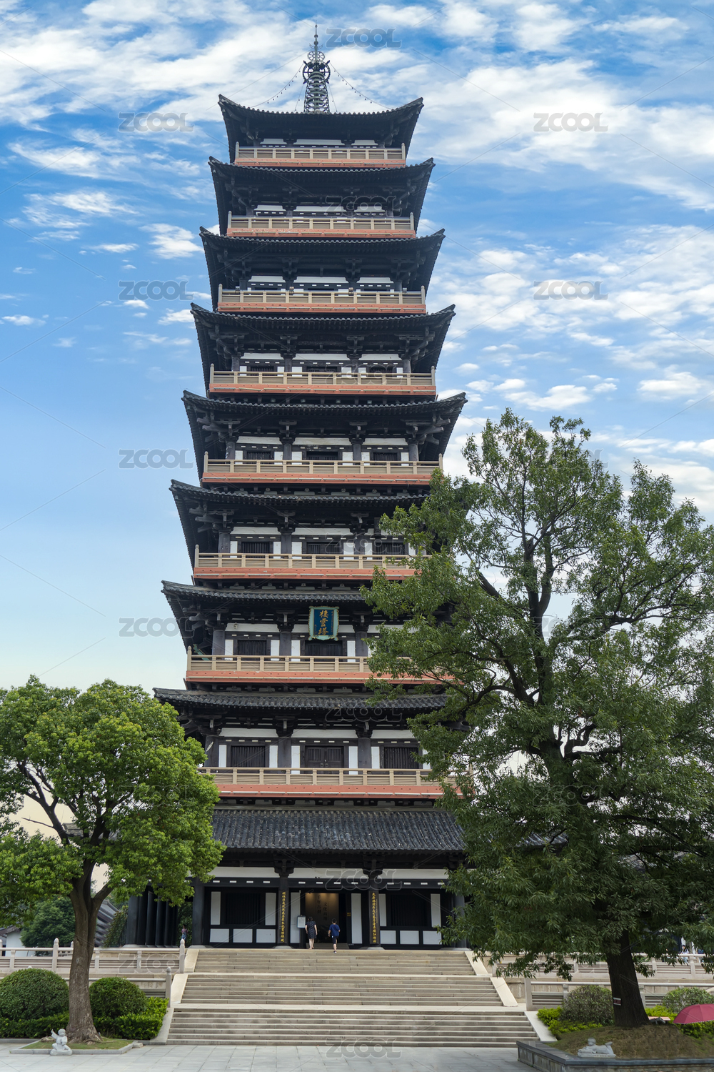 中国河南省洛阳市朱樱塔背景蓝天白云