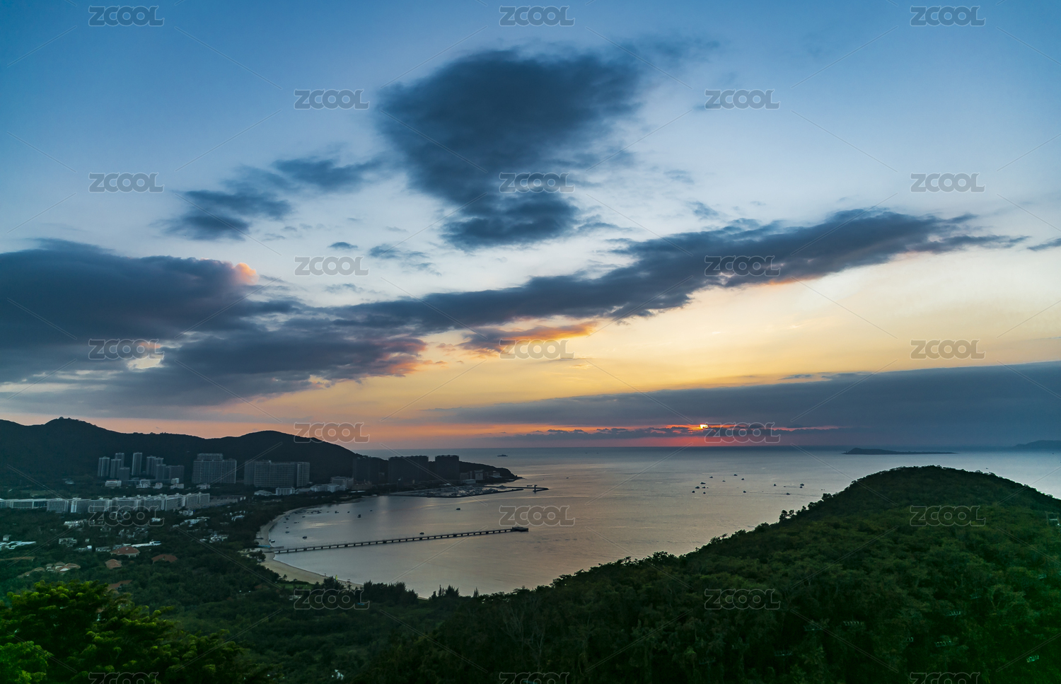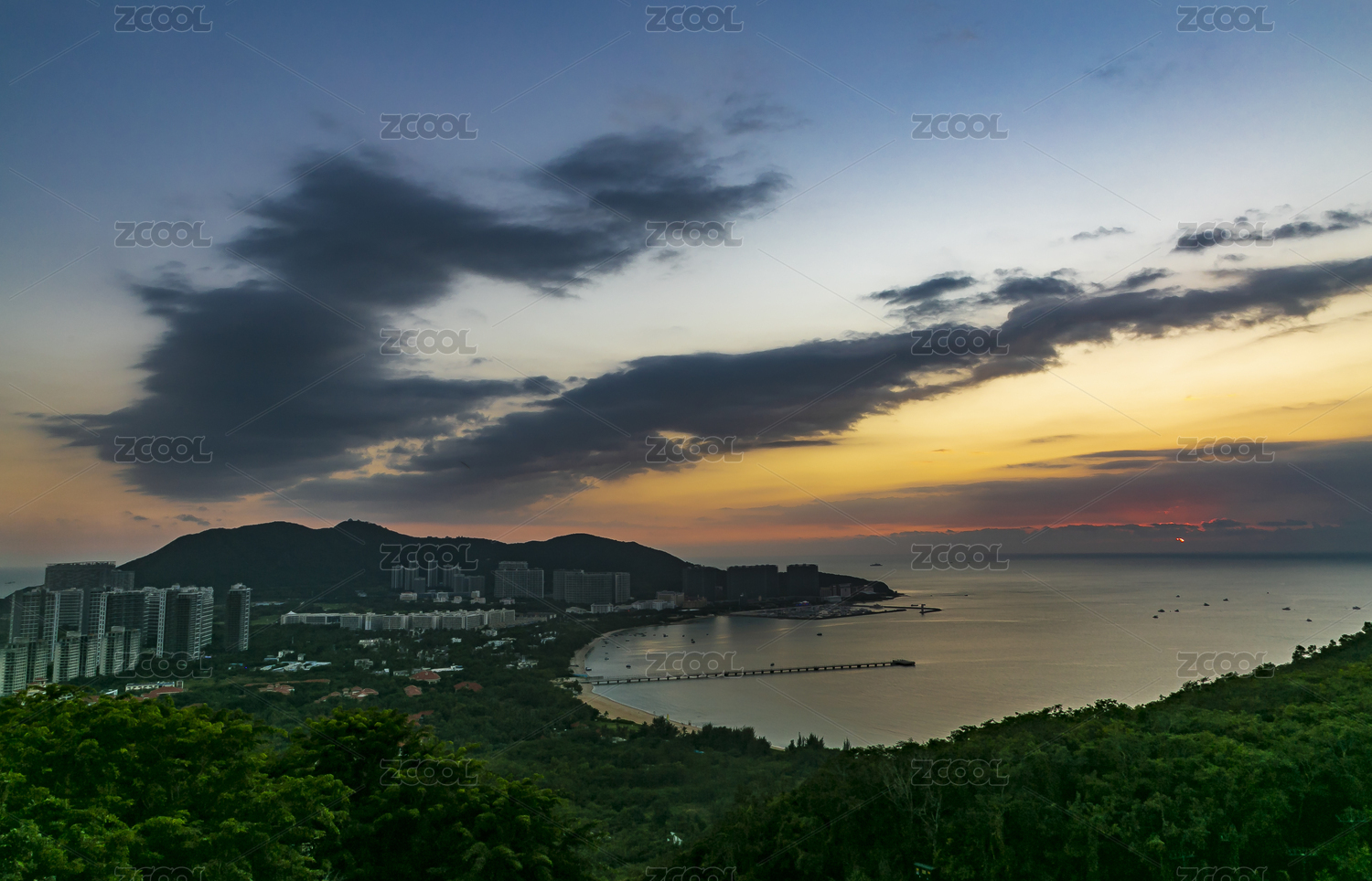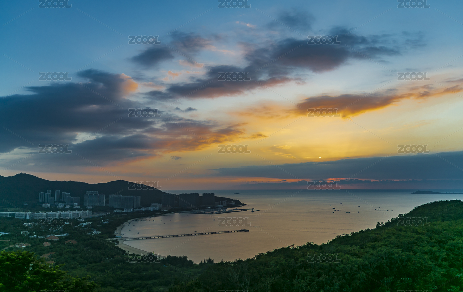 中国,海南省,三亚,鹿回头,傍晚,黄昏,落日,晚霞,大海,海绵