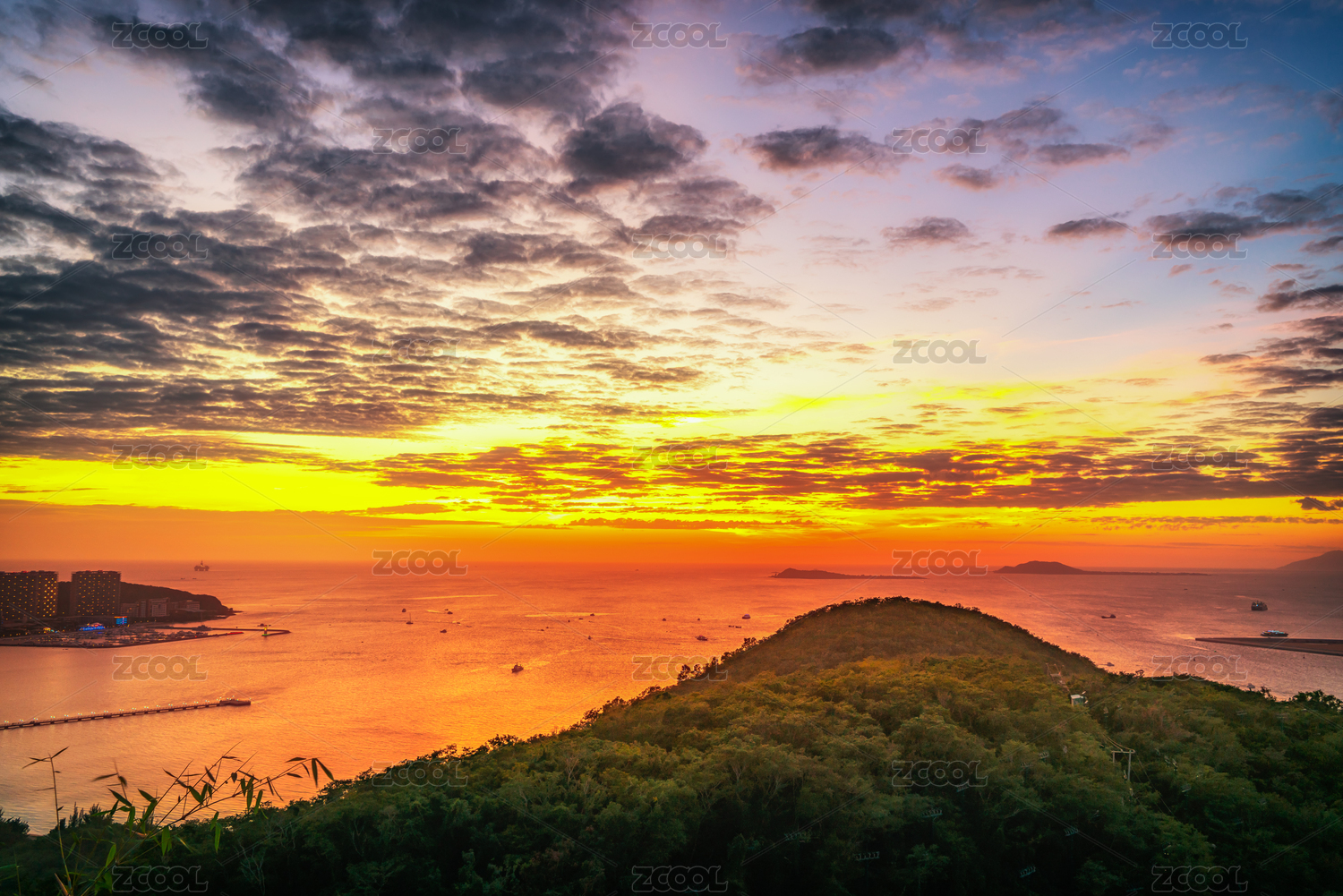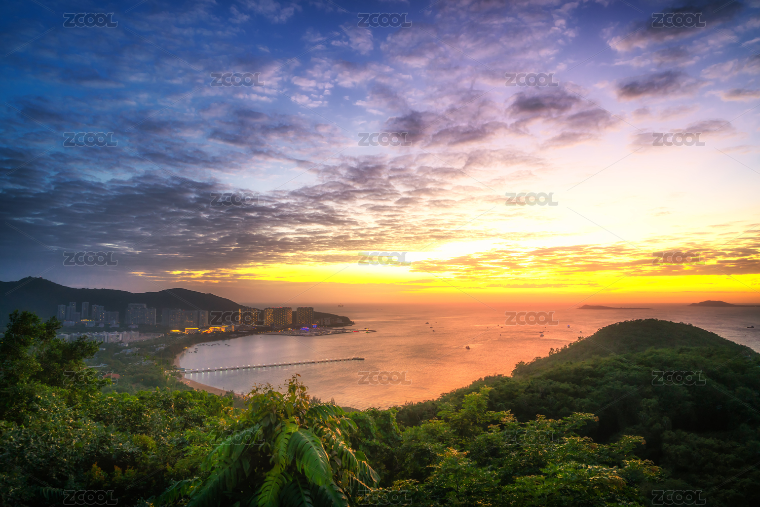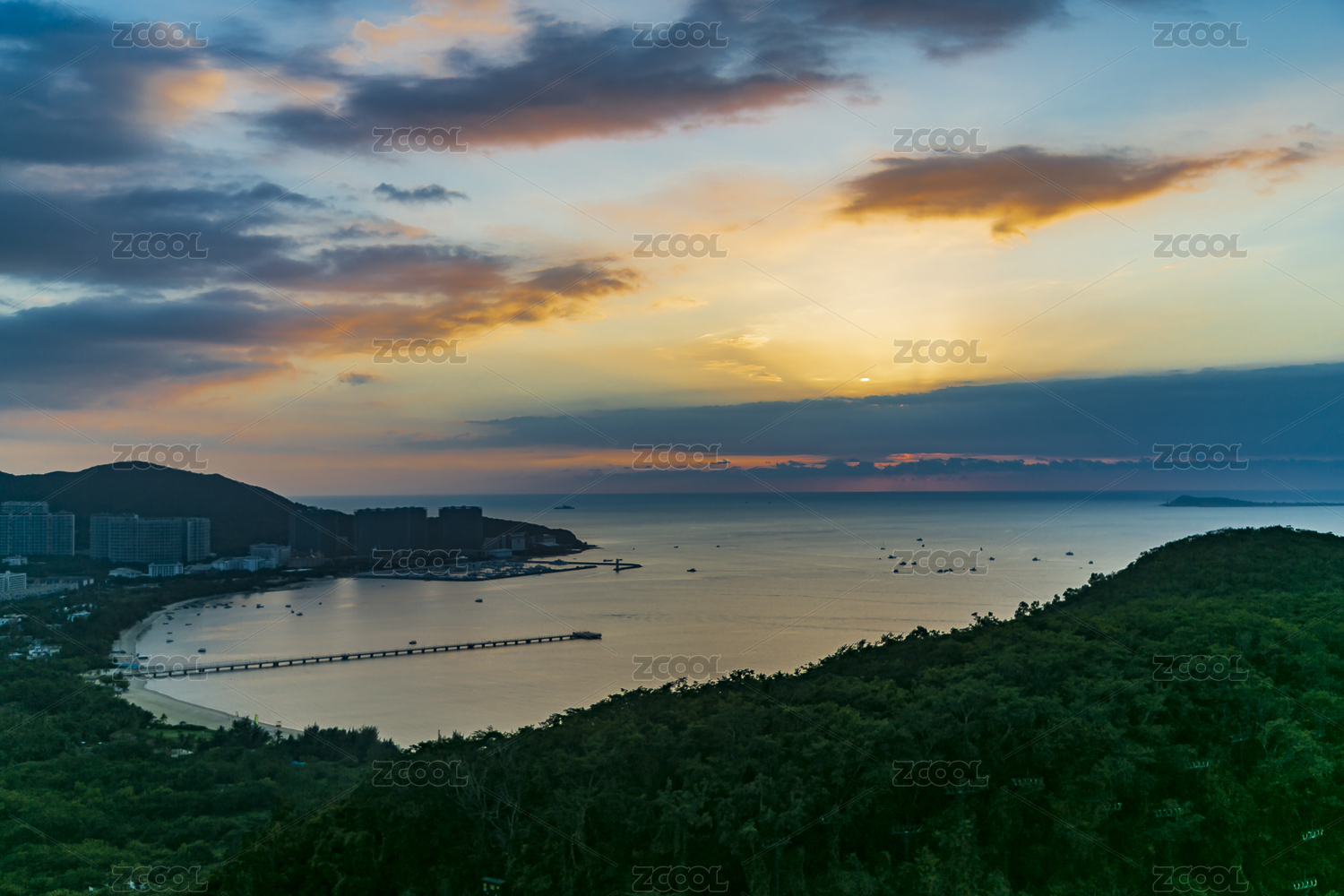 中国,海南省,三亚,鹿回头,傍晚,黄昏,落日,晚霞,大海,海绵