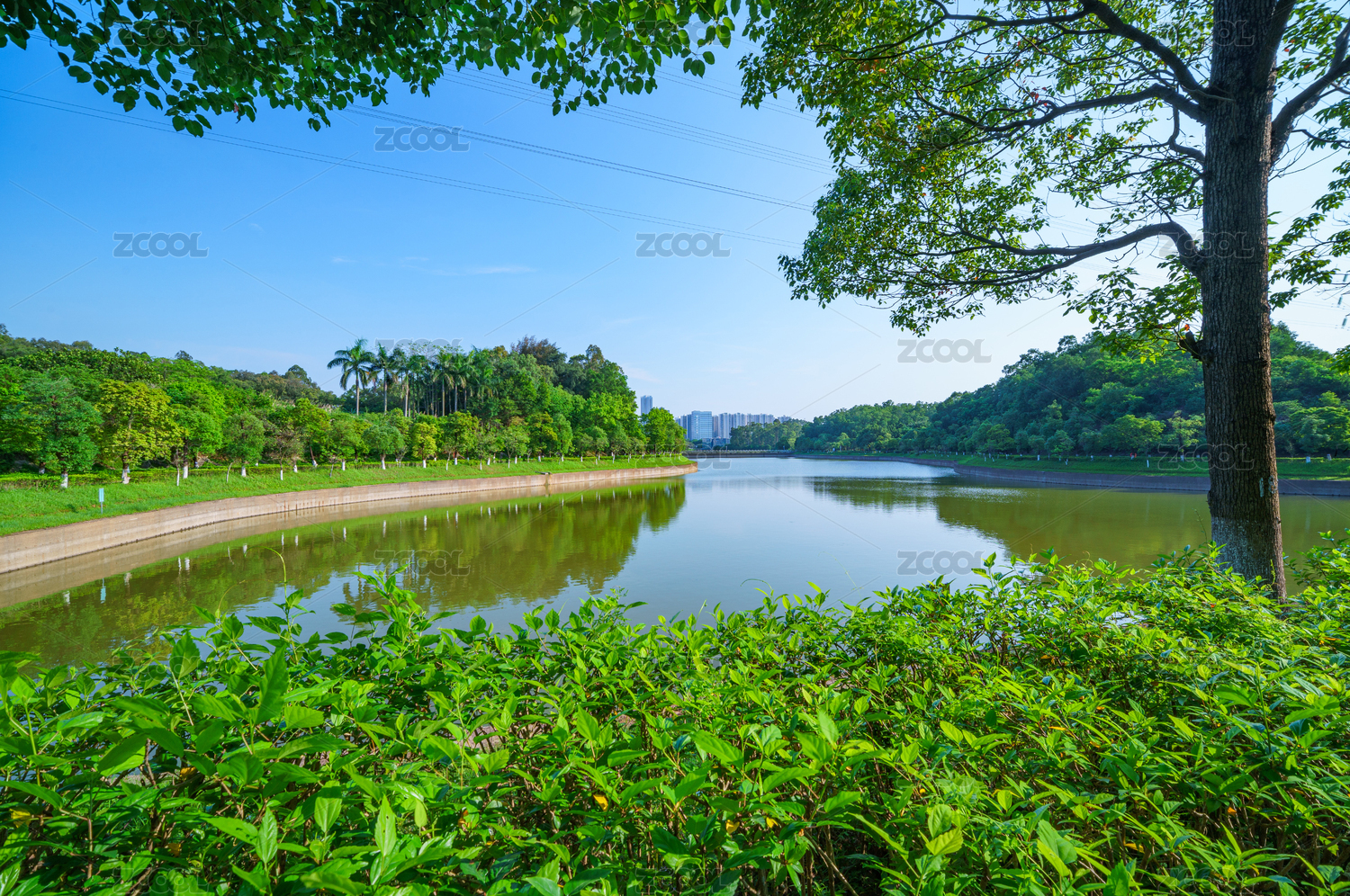 中国广州麓湖公园湖泊风景