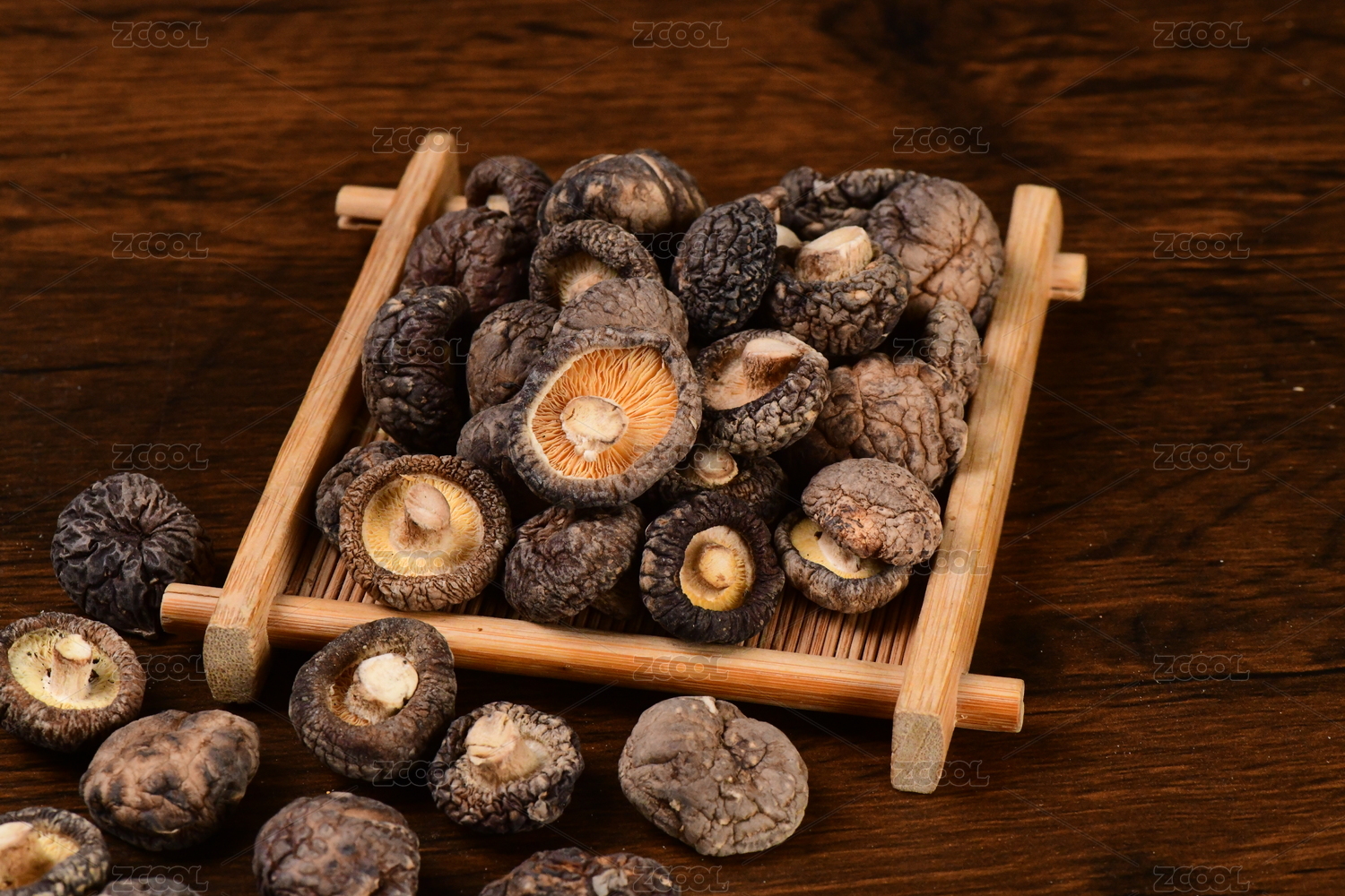 暗色木板上的干香菇