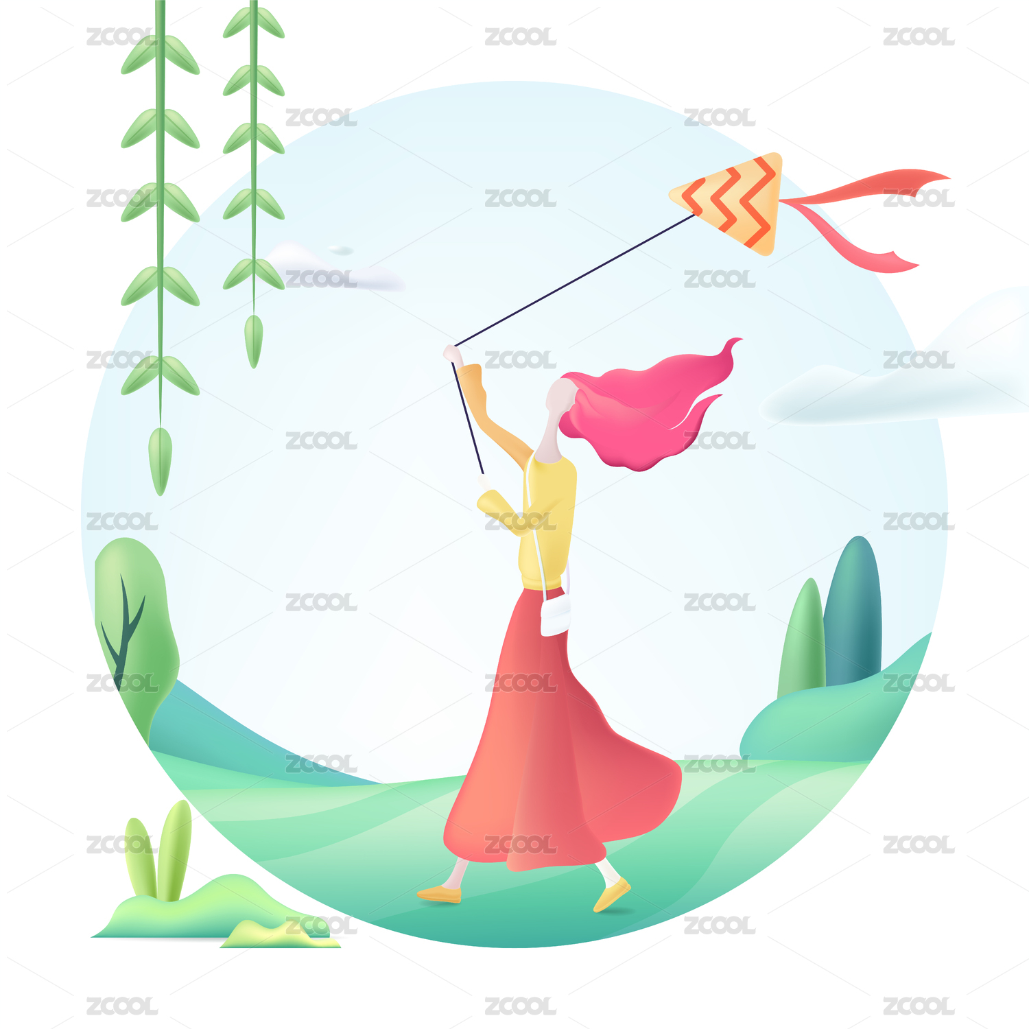 扁平,渐变,肌理,小场景,女孩,春天,休闲