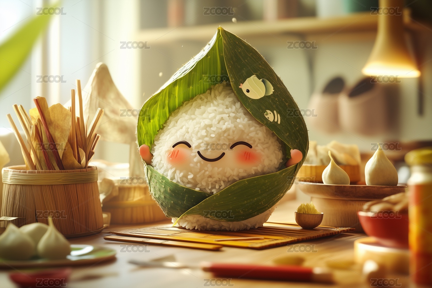 卡通粽子欢快节日氛围