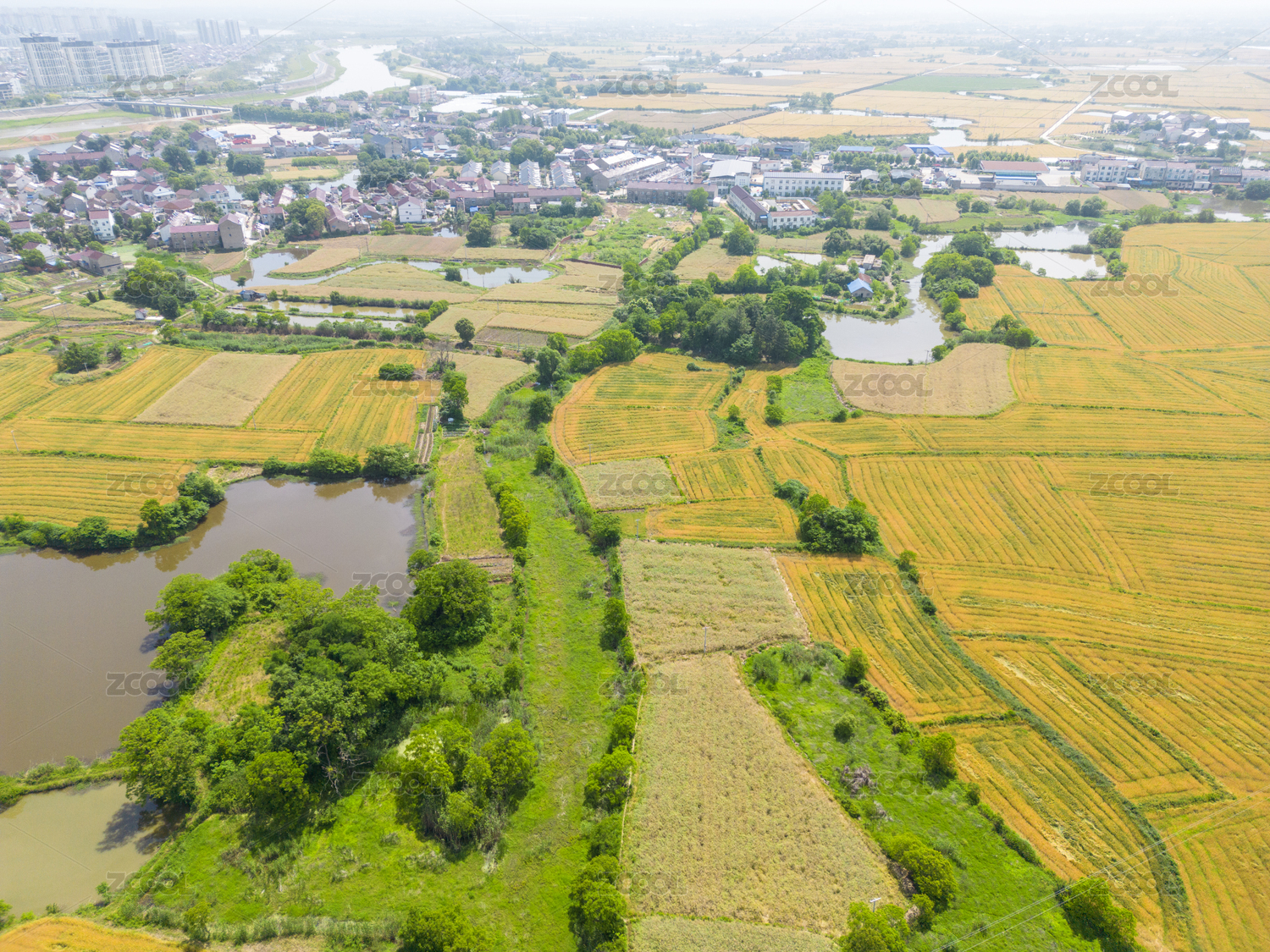 航拍初夏麦熟时节田园风光