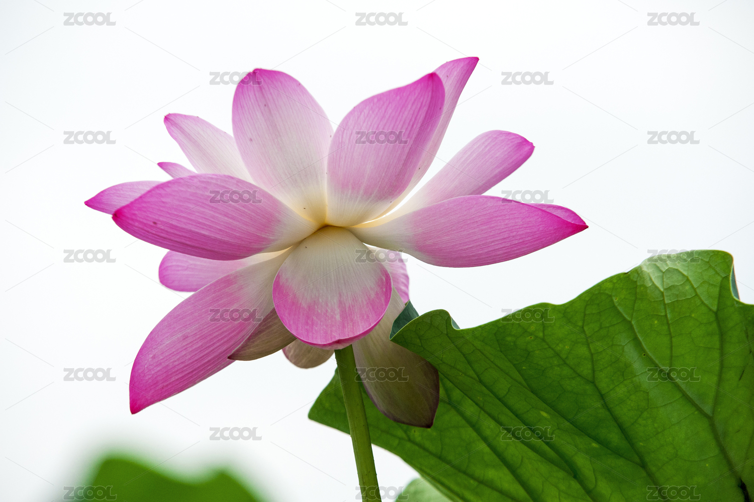 白色背景荷花及荷叶特写