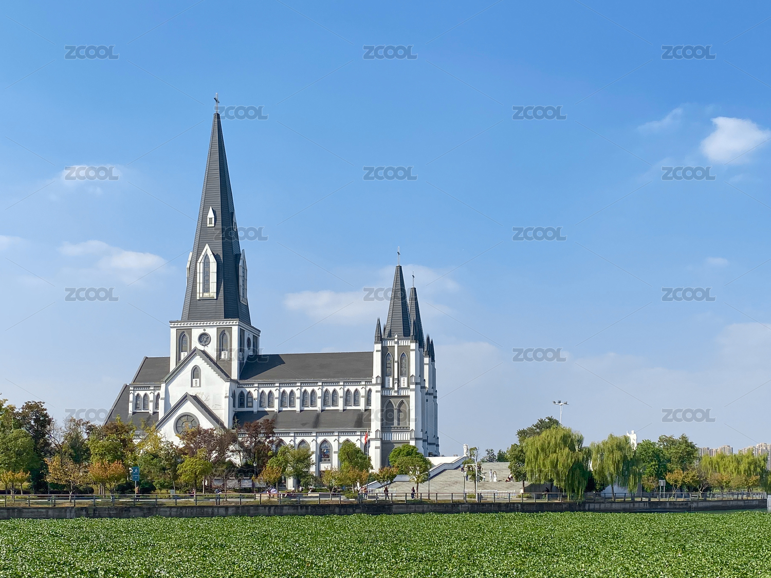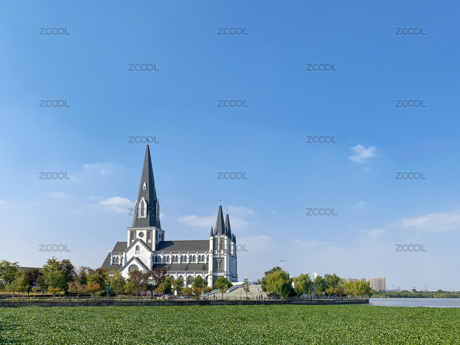 江苏省苏州市阳澄湖天主教堂沿湖风光