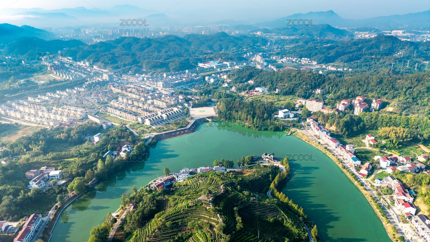 湖北省黄冈市蕲春县李时珍百草园景区航拍图