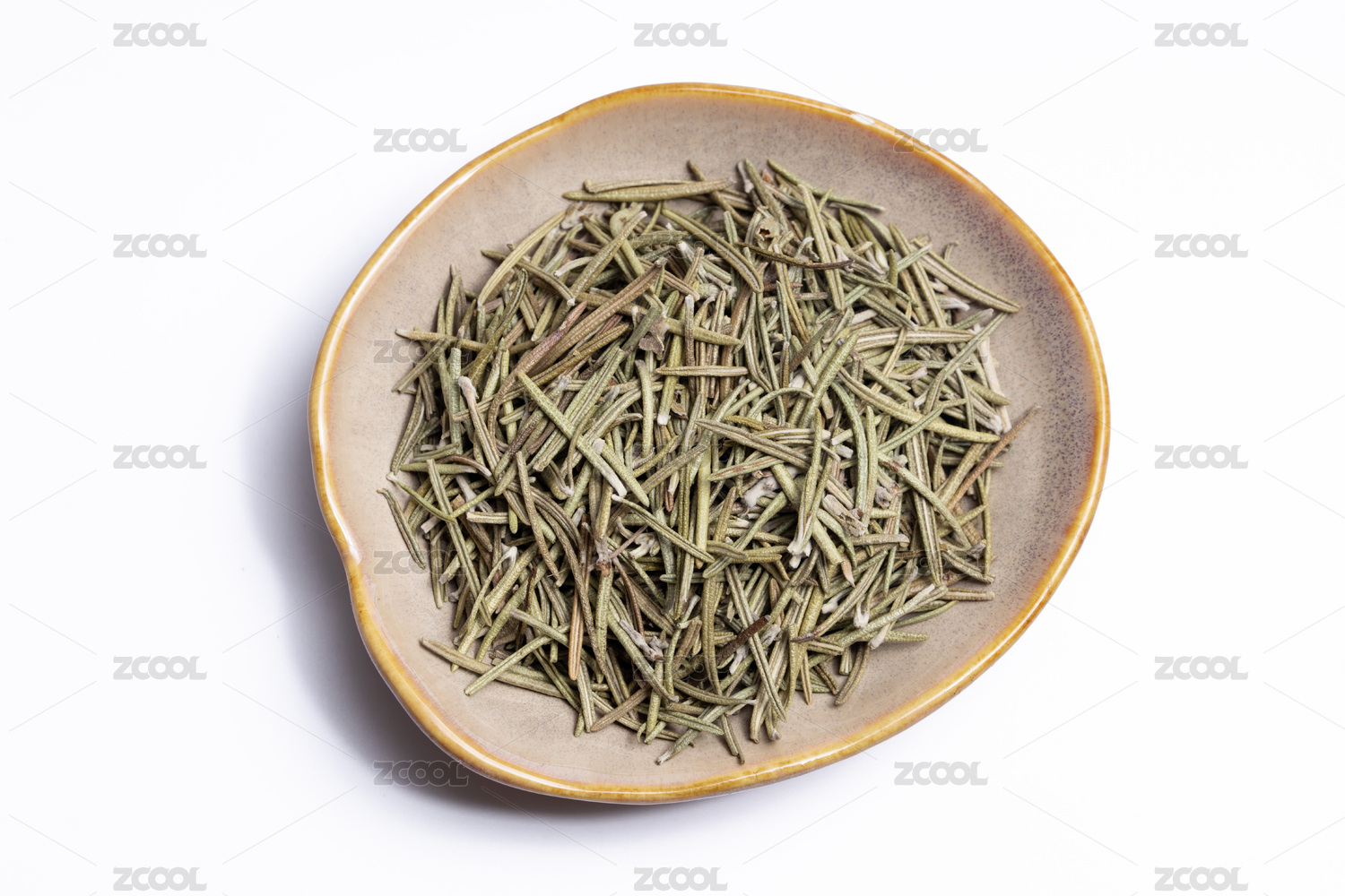 桌面上的盘子里的干爽的干迷迭香