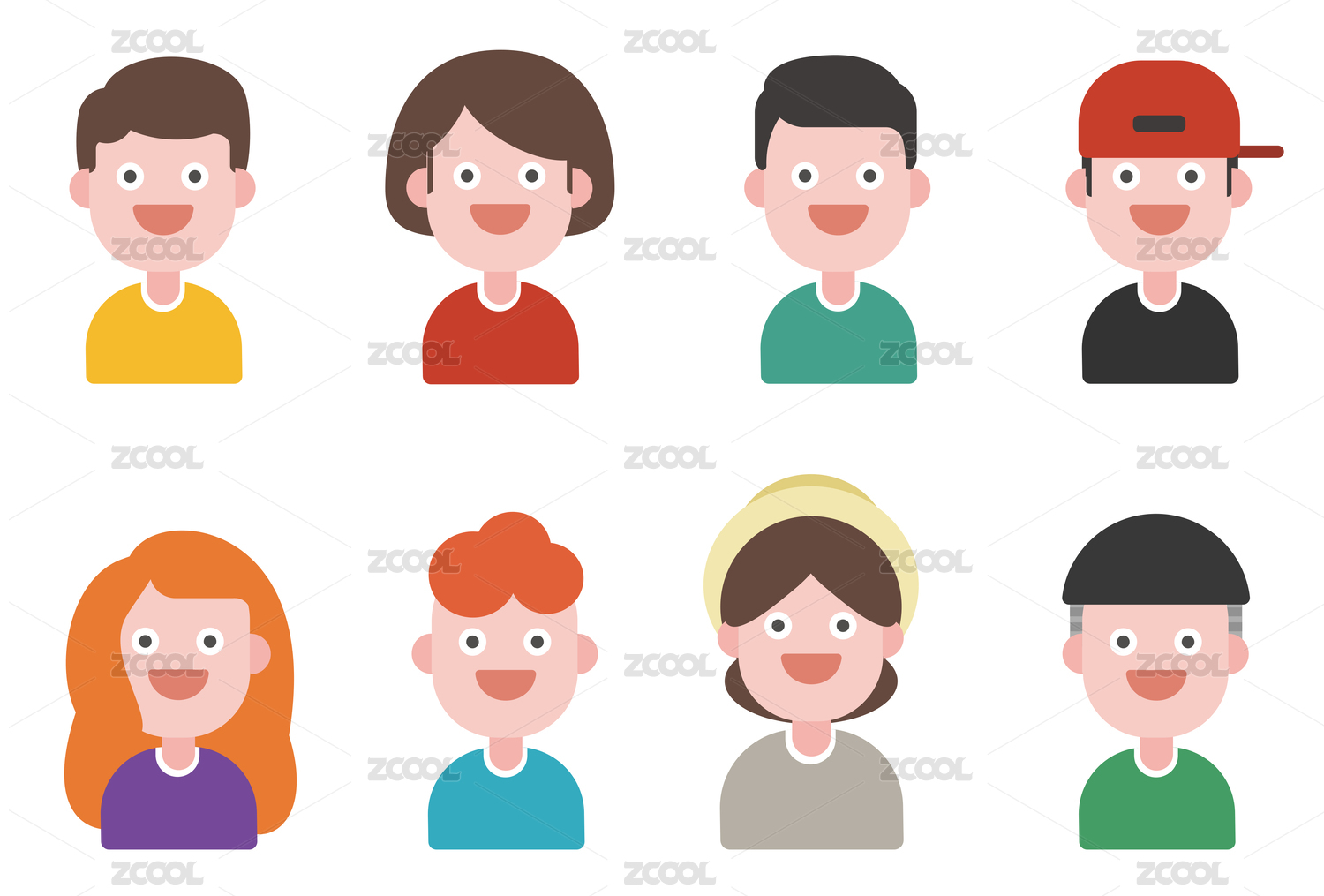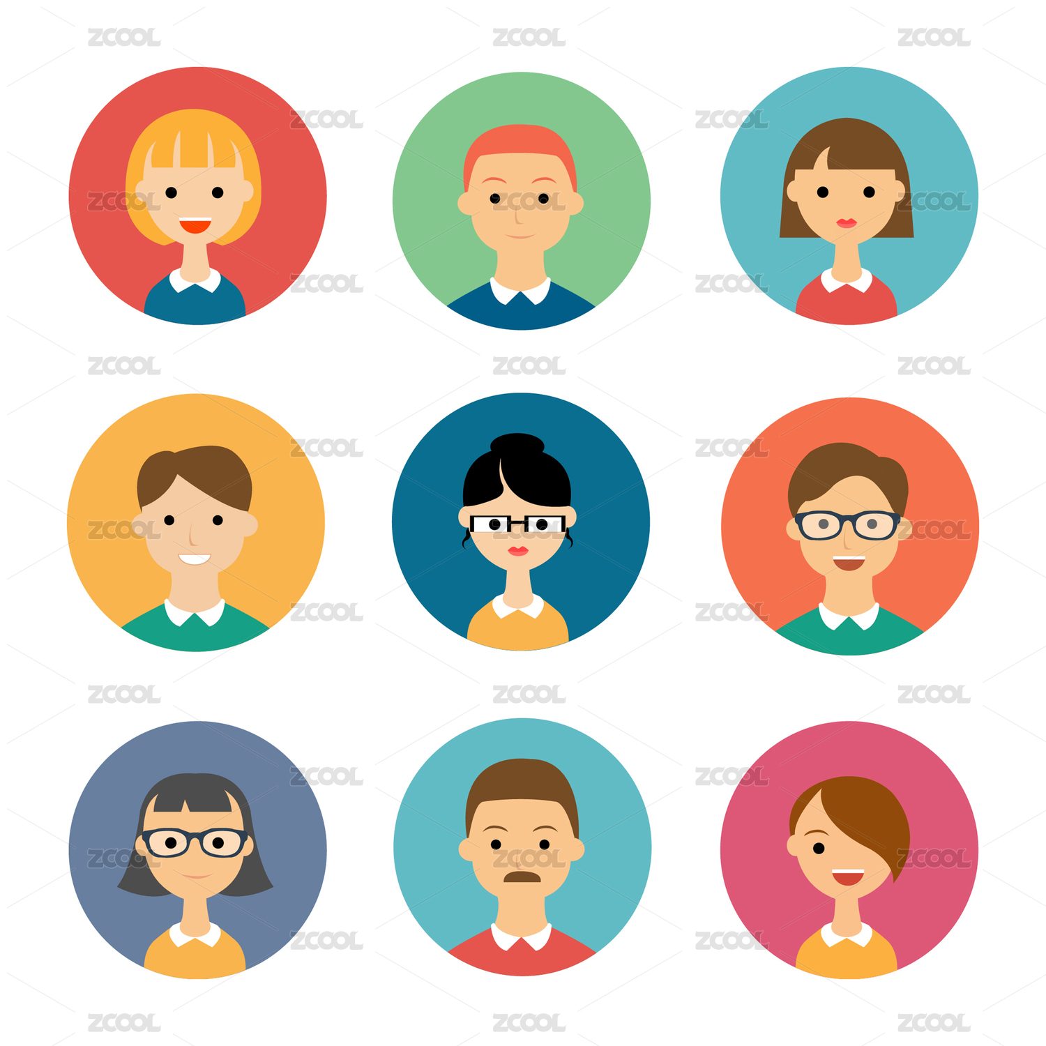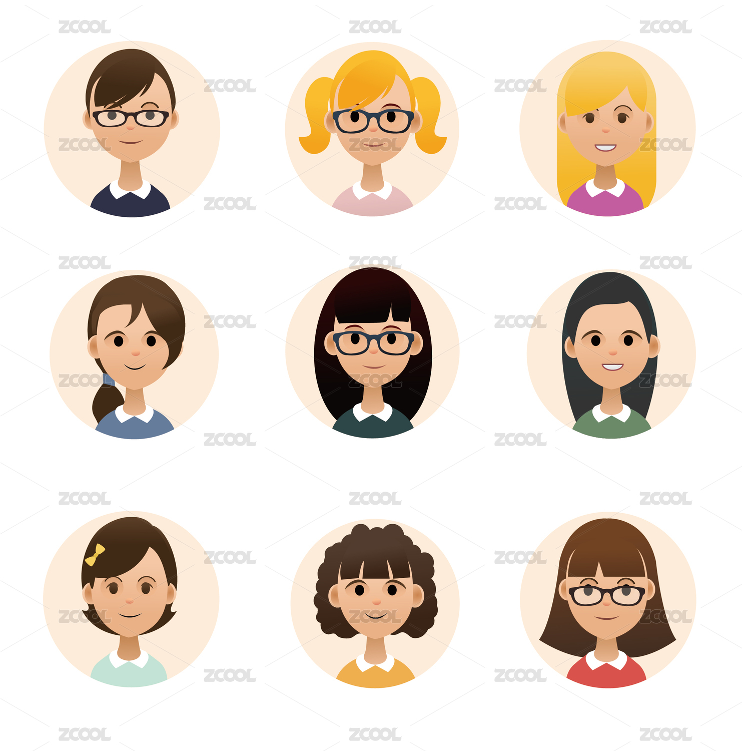 扁平风可爱女生头像不同发型