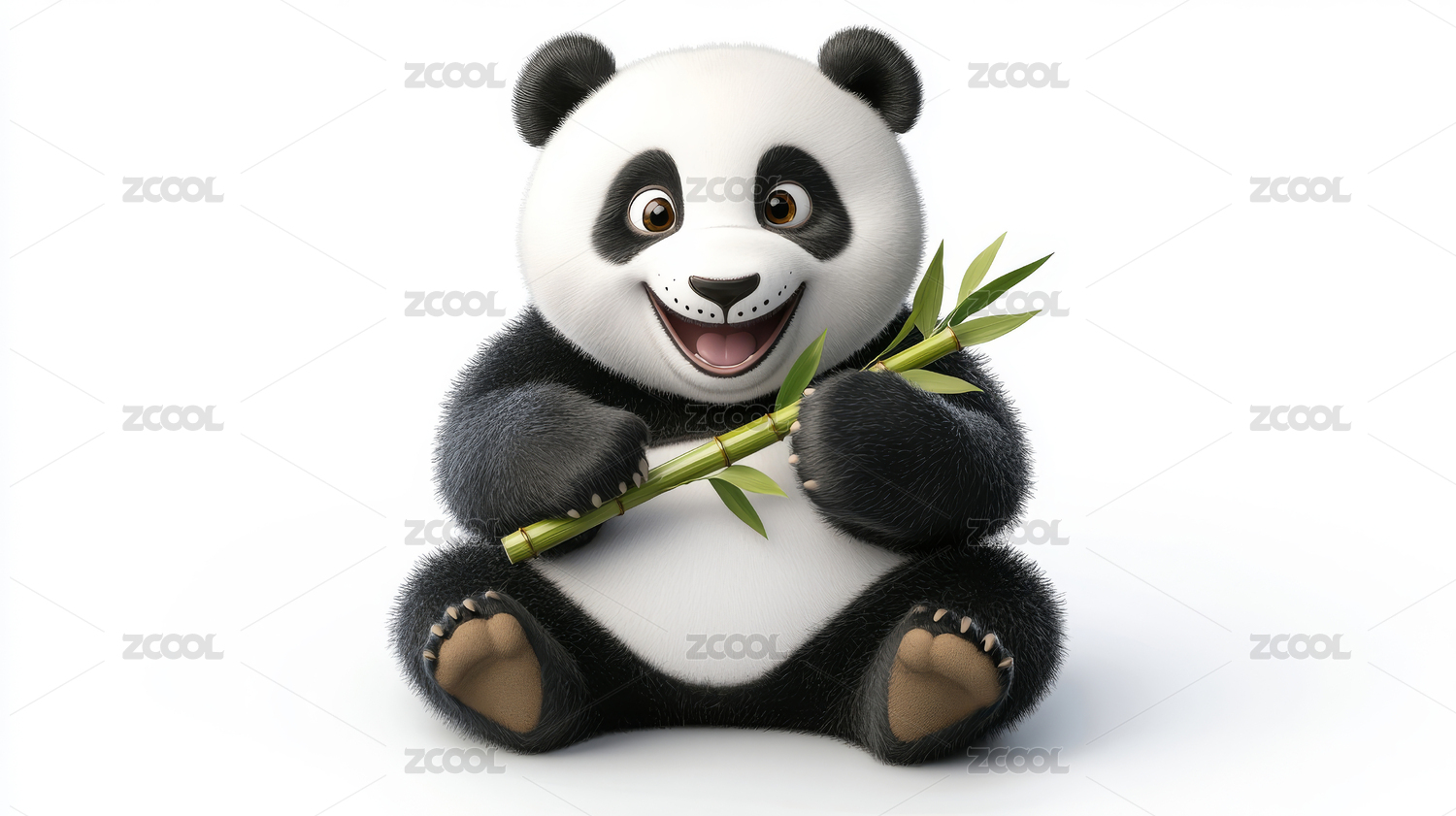 熊猫,竹子,可爱,萌宠,动物,3D,渲染,白色,黑色,背景