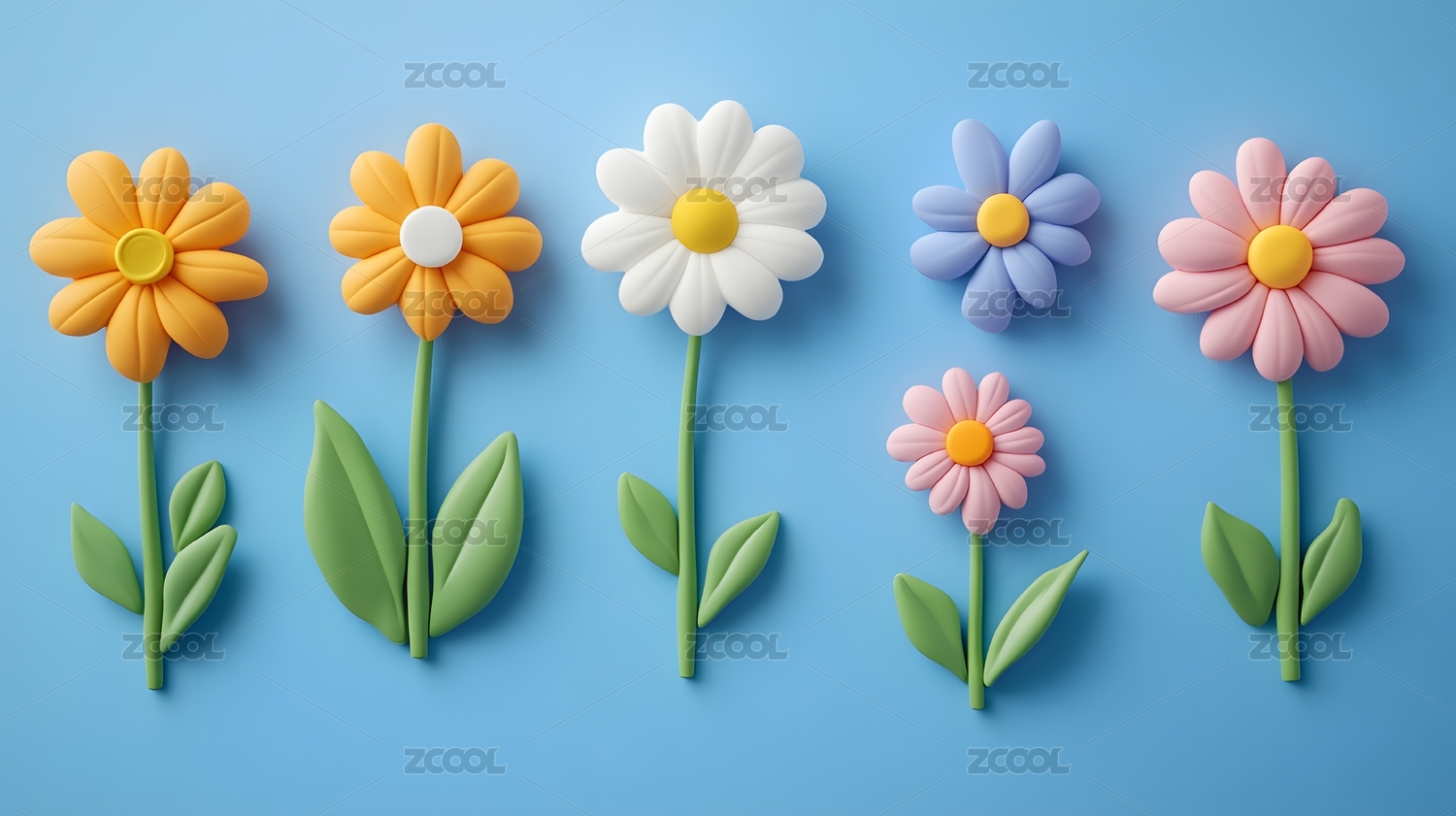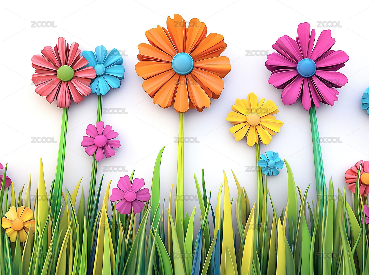3d花卉工艺壁纸橙色绿色黄色花朵概念插图