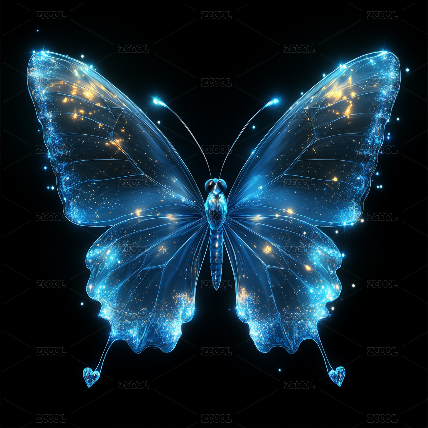抽象,蓝色, 未来感, 数字, 发光, 网格, 线条, 科技, 蝴蝶, 透明
