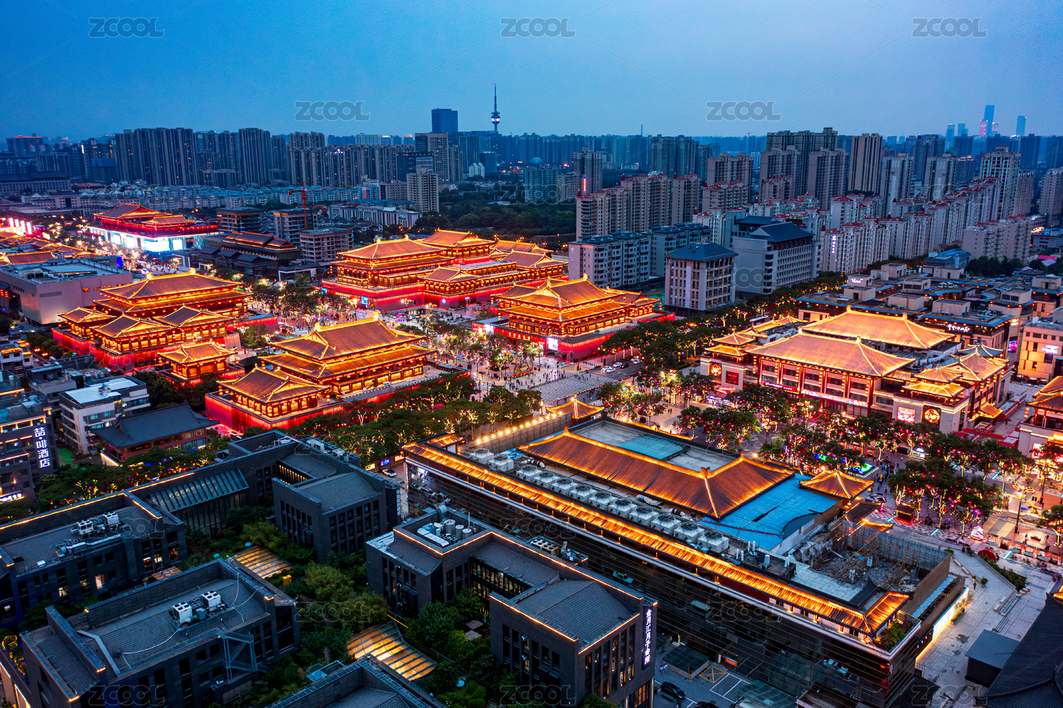 航拍西安大雁塔大唐不夜城城市风光夜景