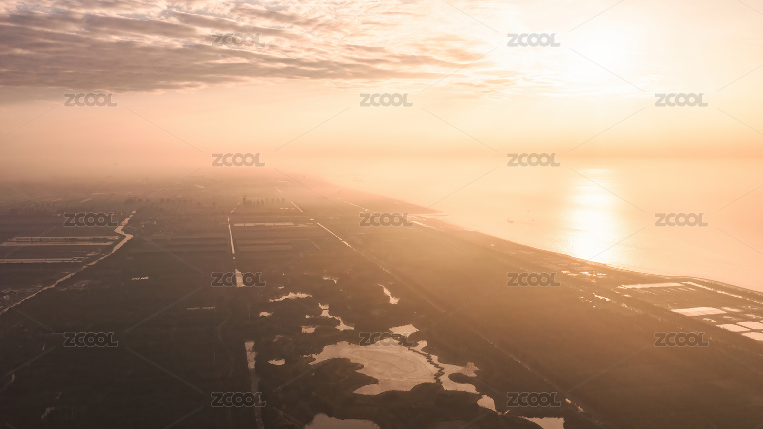 天津滨海新区渤海湾盐碱地航拍俯视图