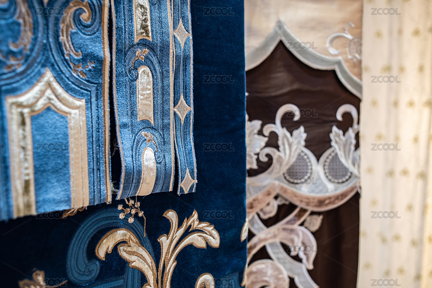 中国风古典刺绣缎布窗帘帷幔面料样版