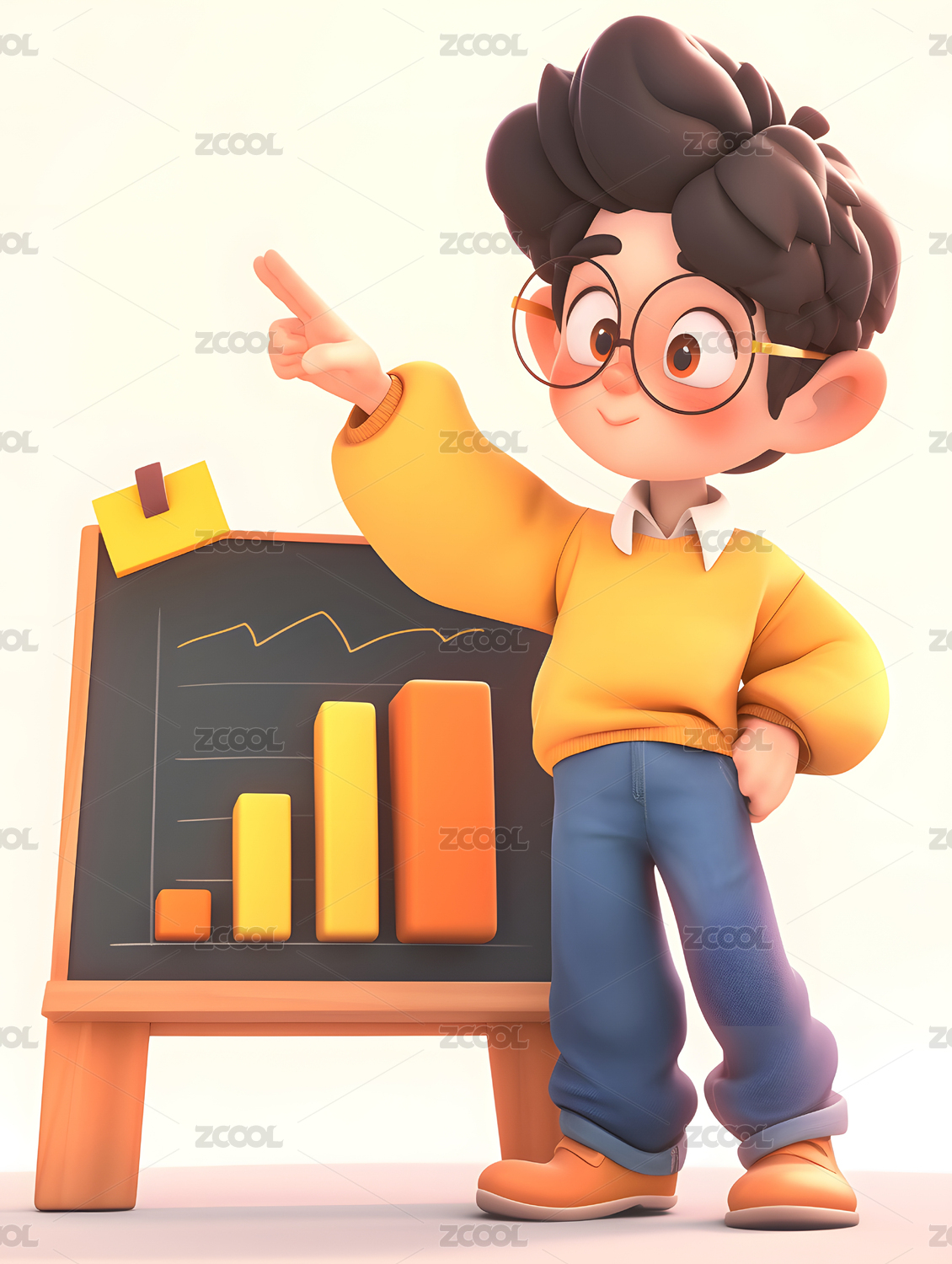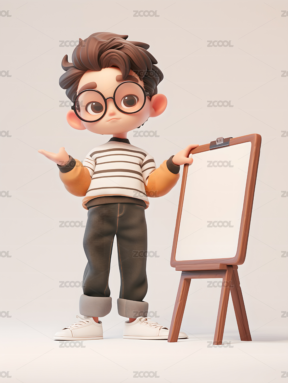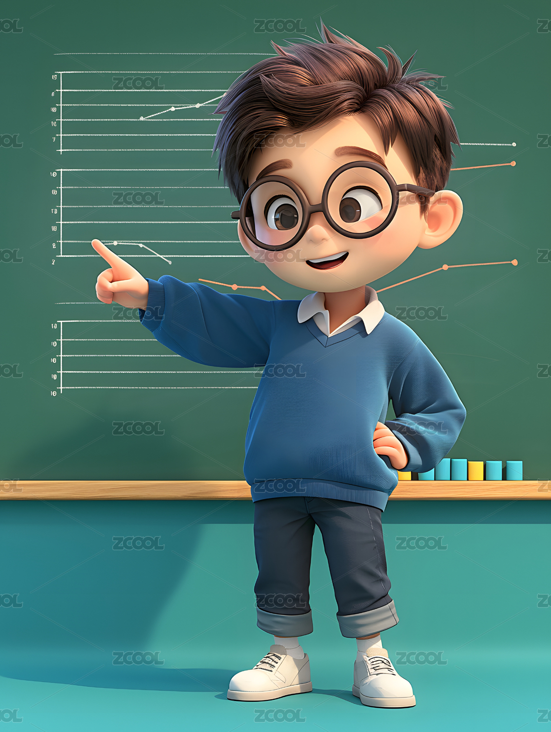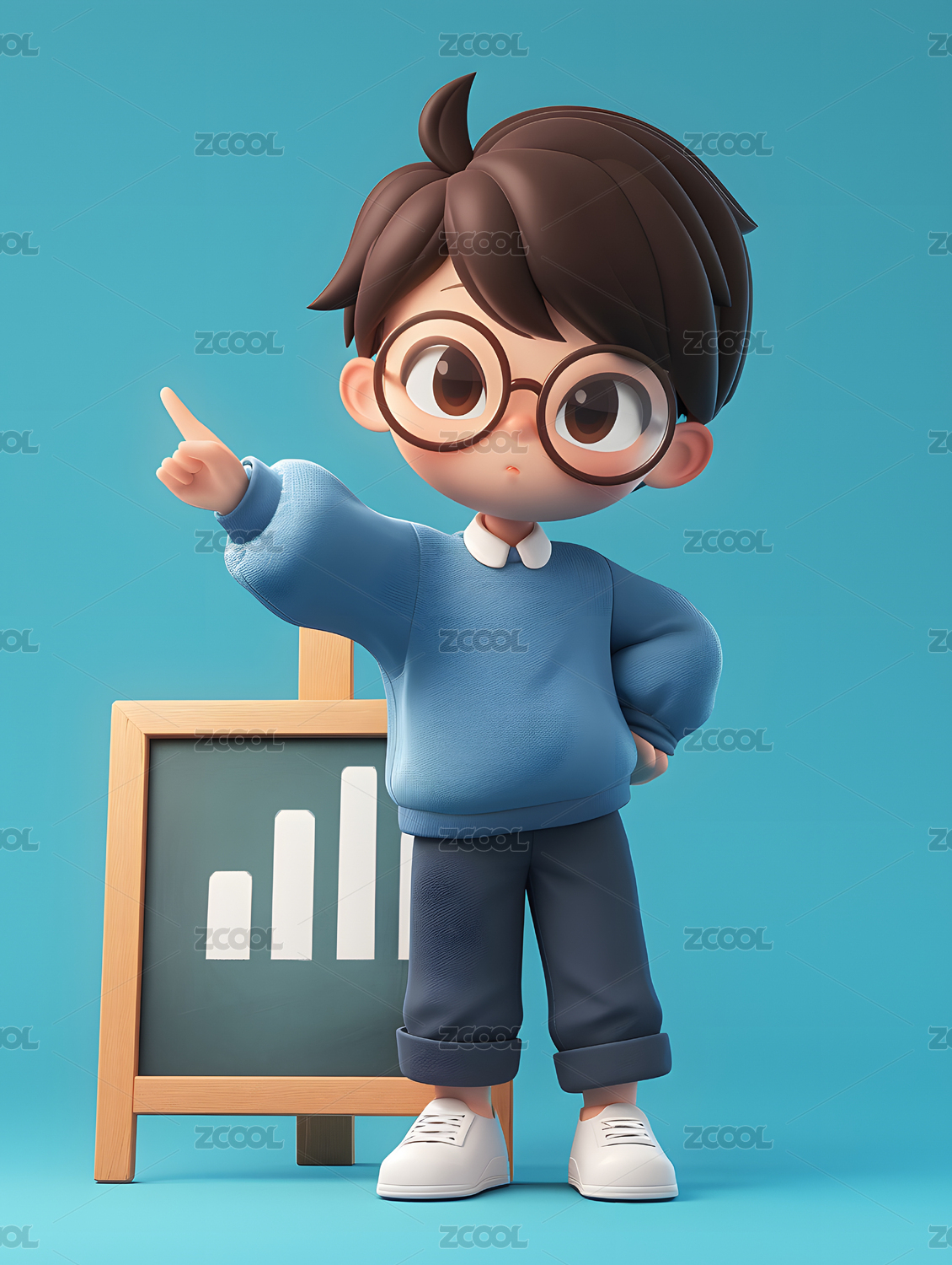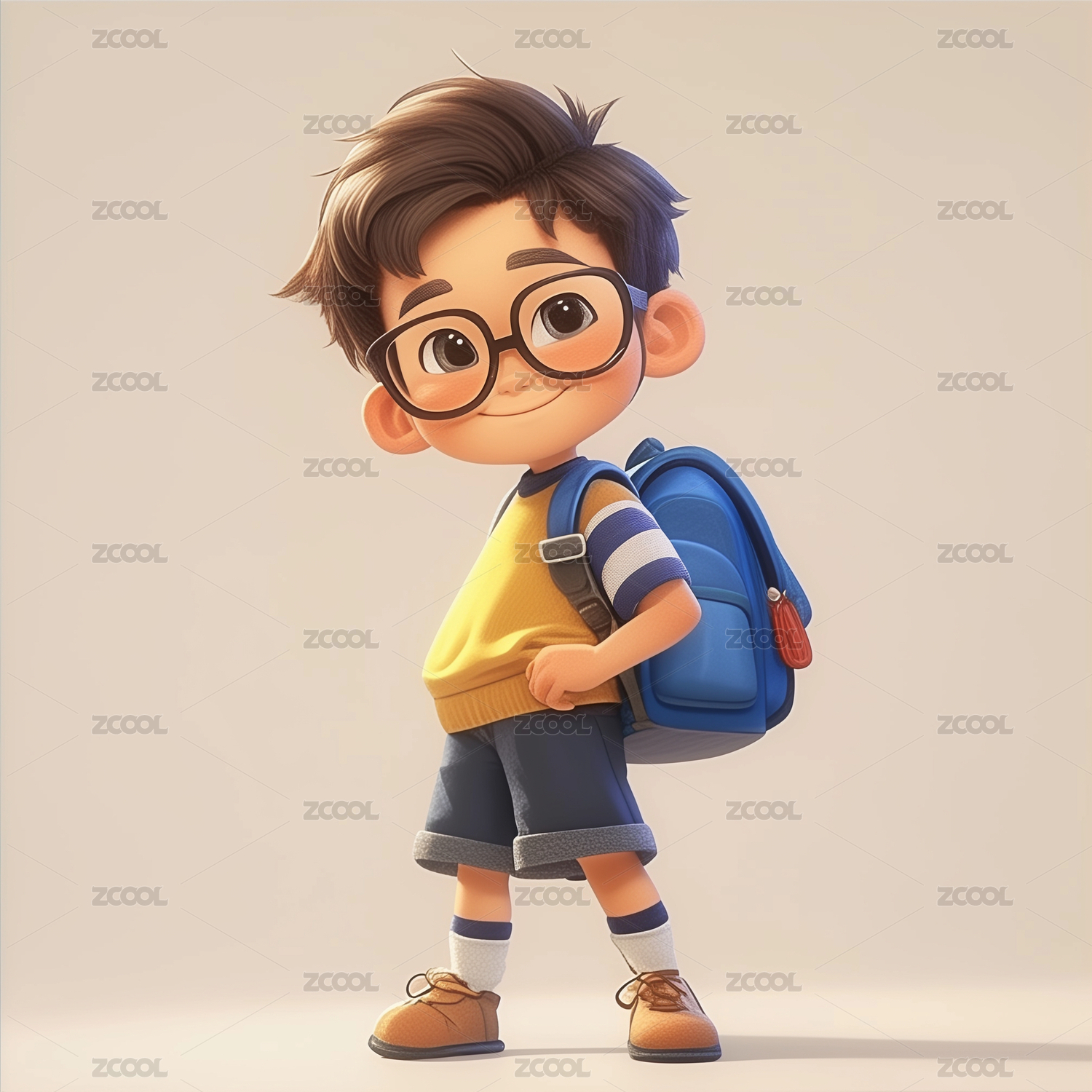 3D渲染可爱卡通戴眼镜的男孩人物插画