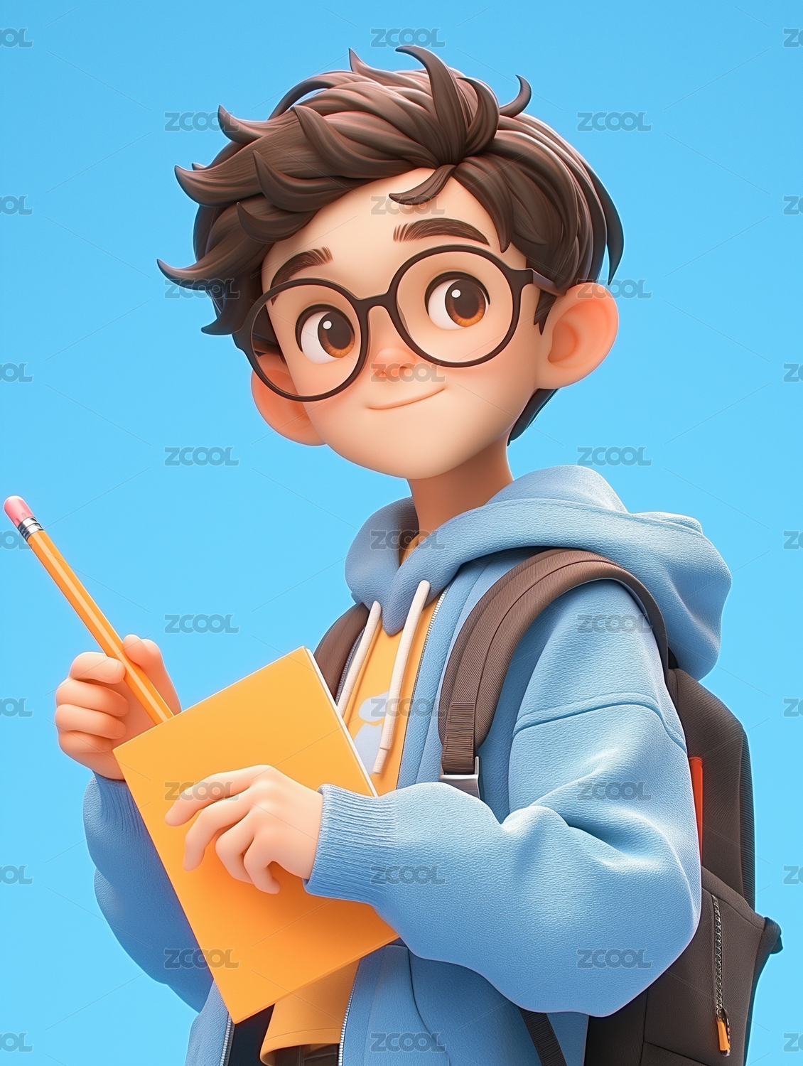 3D卡通可爱男学生插画