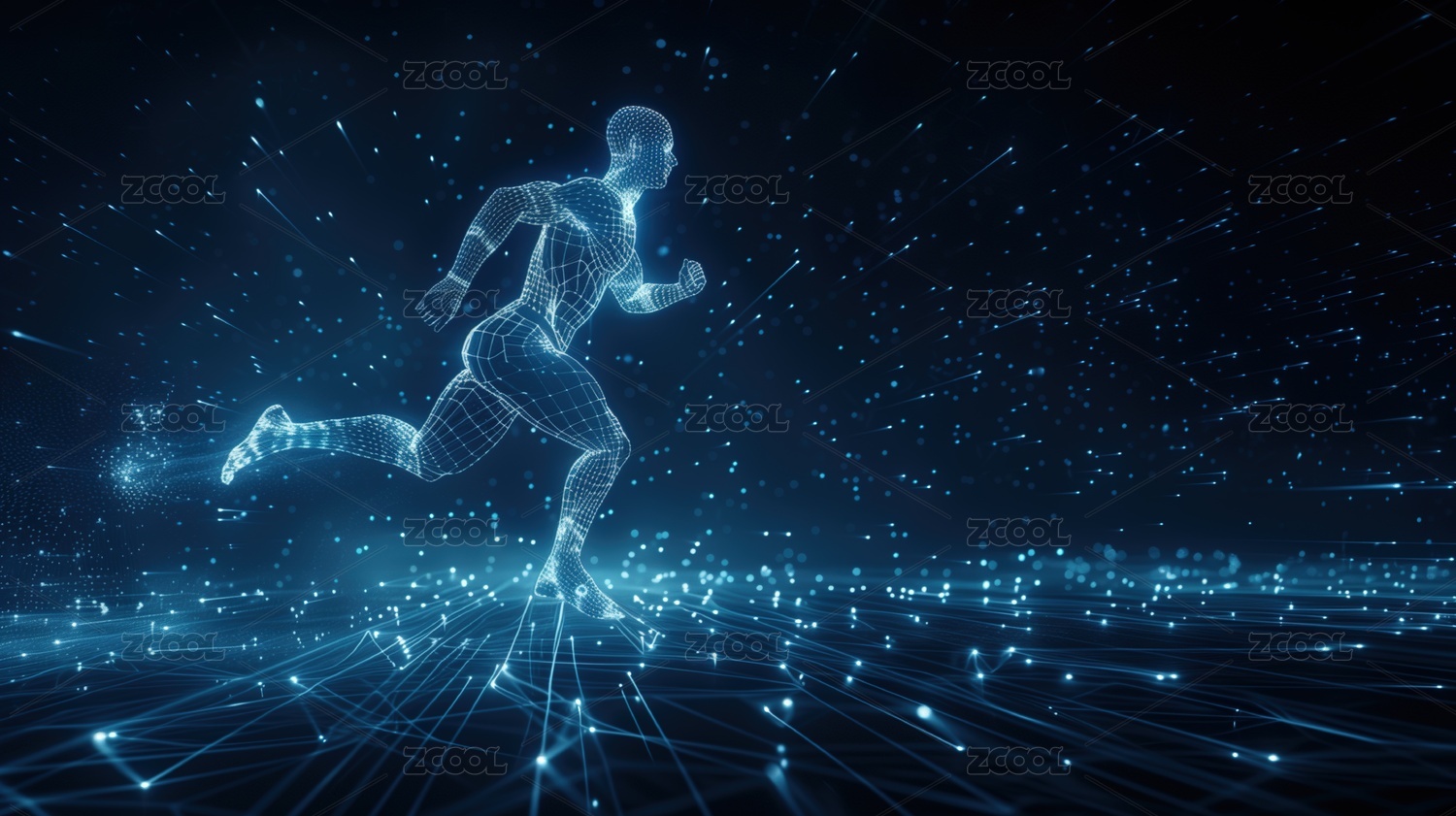 线条科技数字奔跑的人,发光蓝光粒子