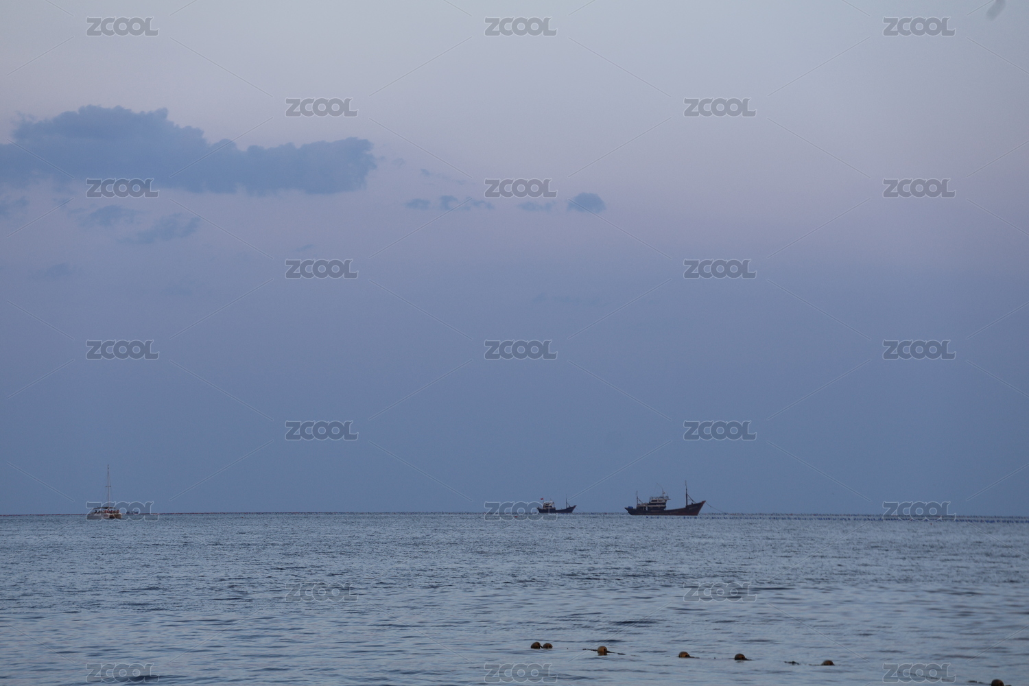 黄昏时大海与船只的景观