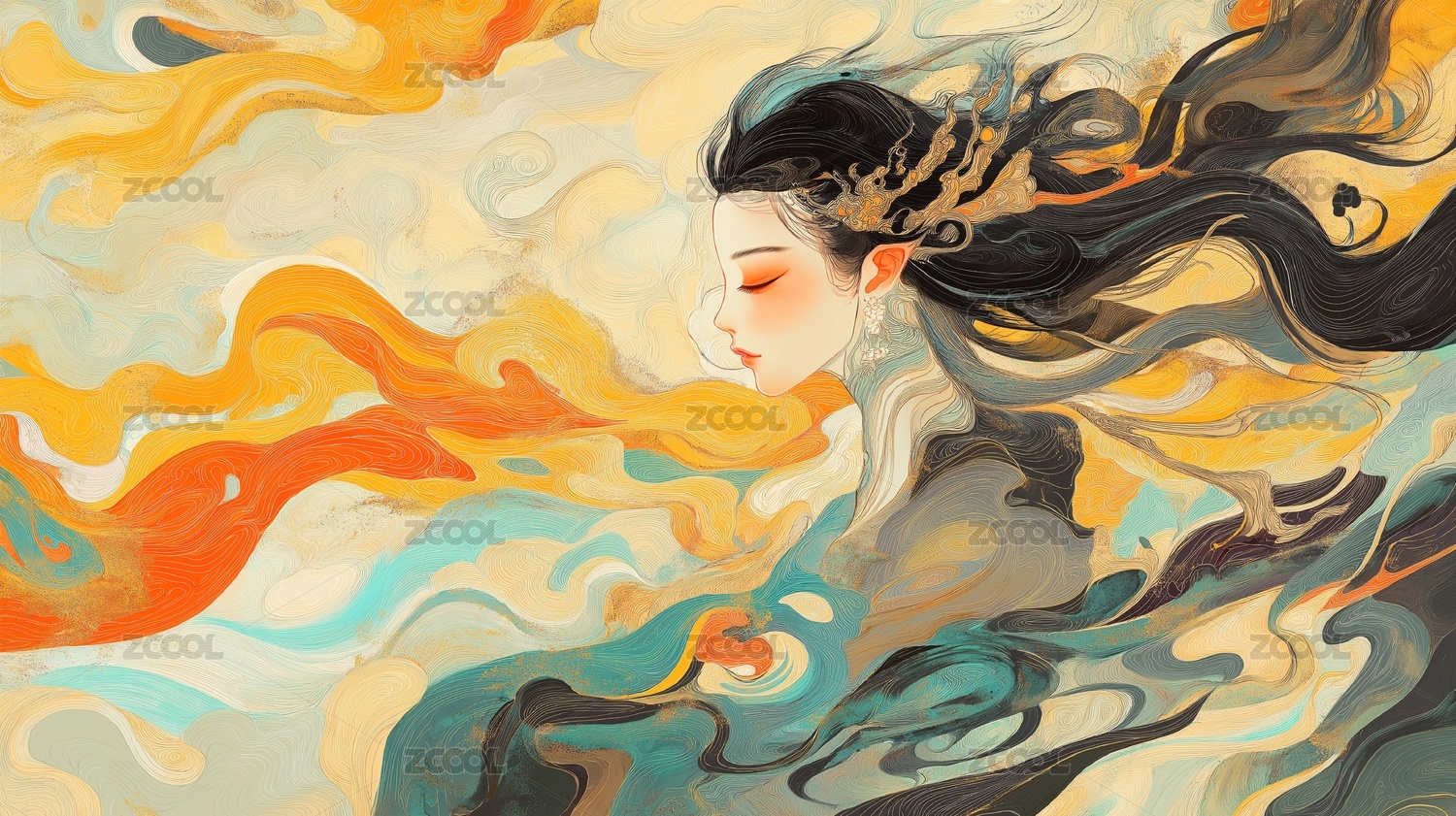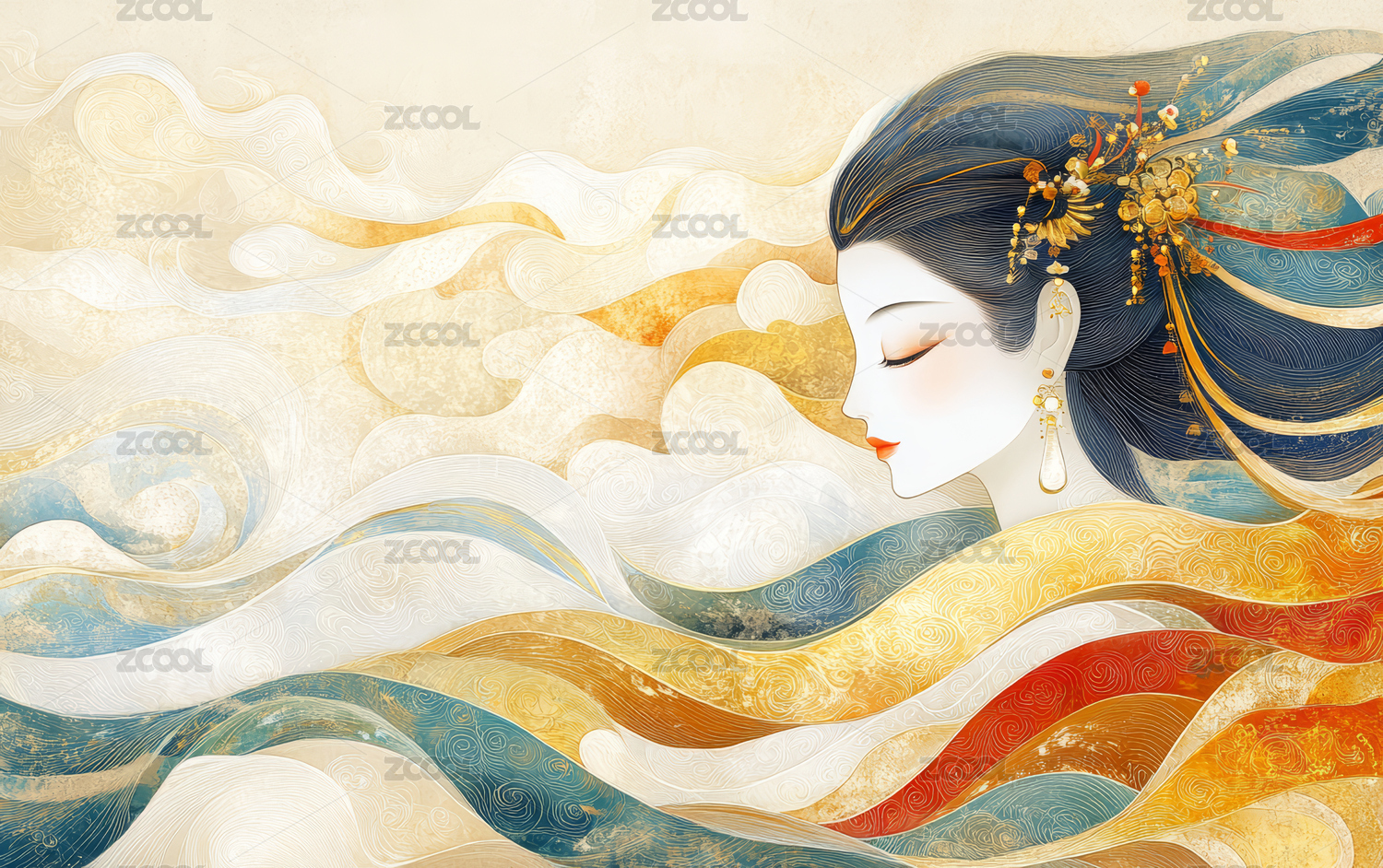 古装美女抽象艺术插画