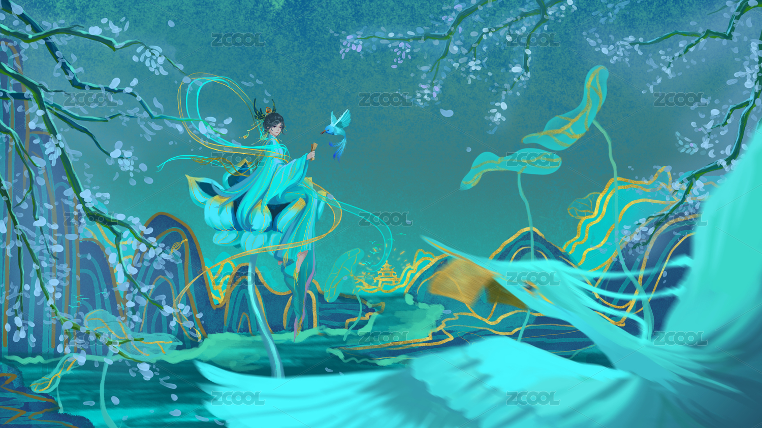 古风唯美梦幻插画美女