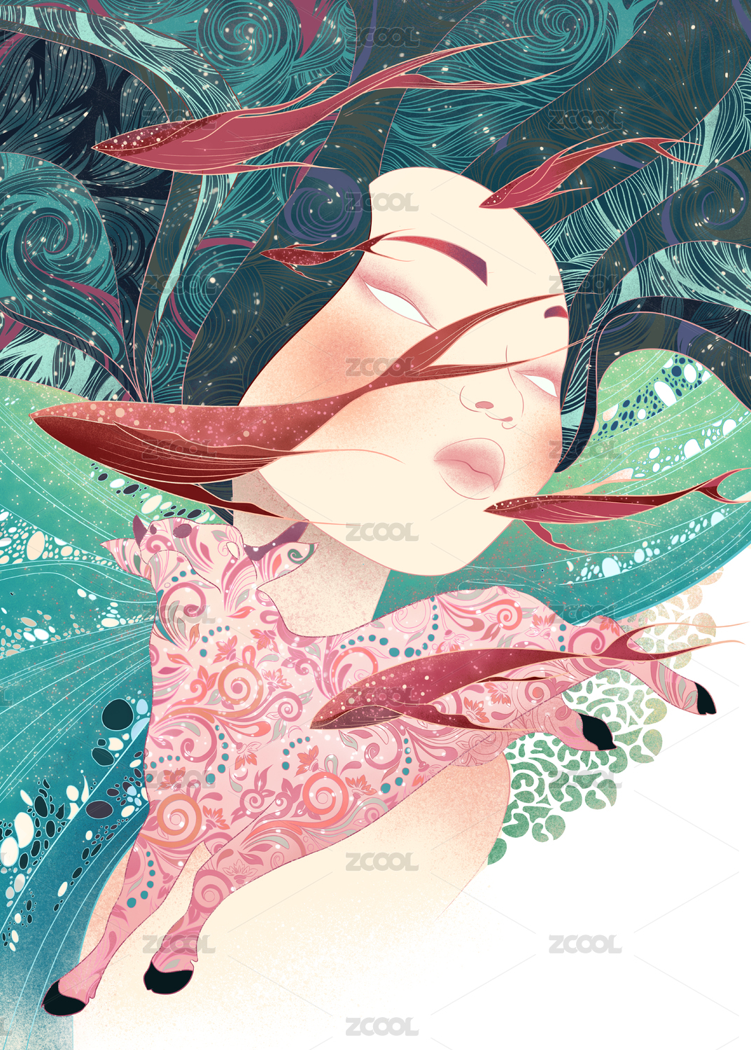 藤蔓从女孩身体里长出-机理板绘
