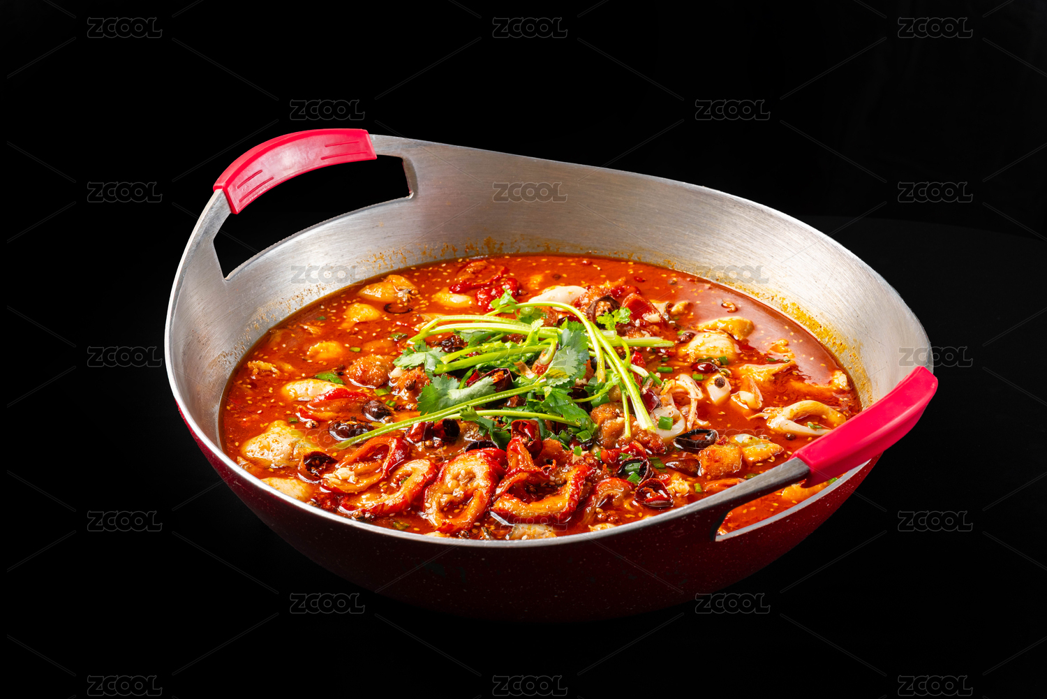 不锈钢锅里小米椒的麻辣牛蛙