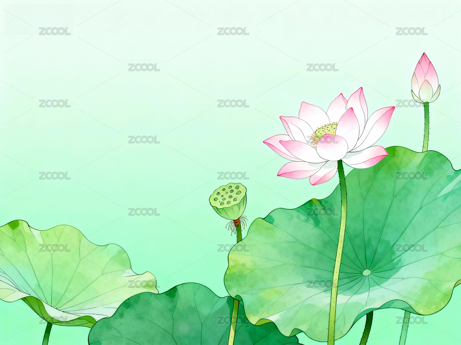 立夏节气荷叶3D夏天池塘荷花盛开小暑插画