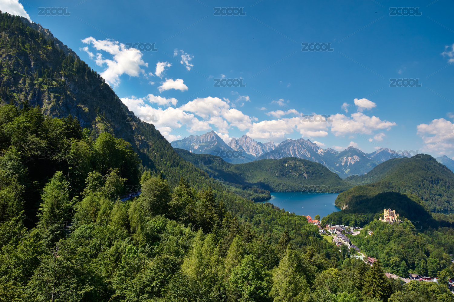 群山环抱中的德国巴伐利亚州高天鹅堡