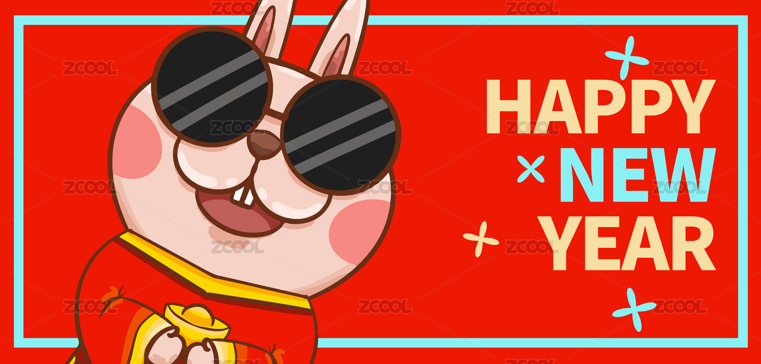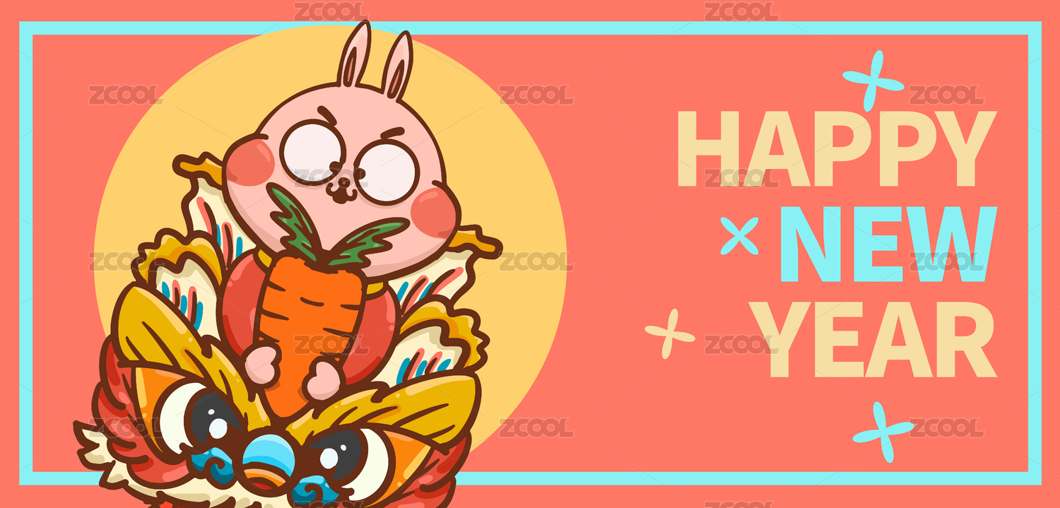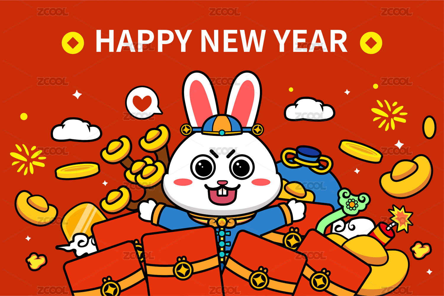 兔年,手绘,卡通,生肖,兔子,吉祥,祝福,节日,素材,喜庆