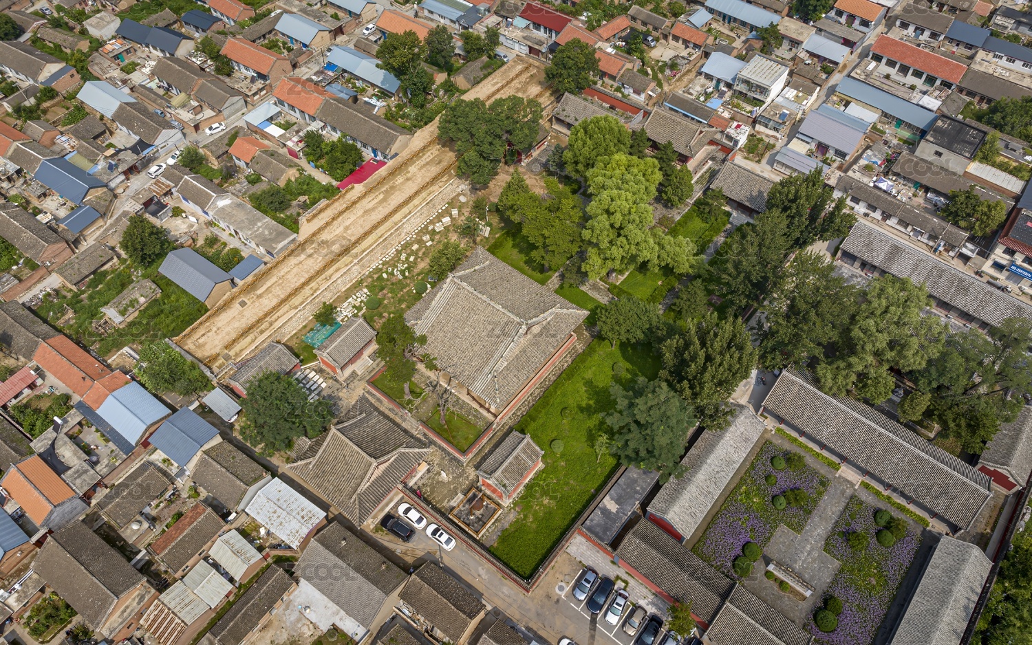 山东省淄博蒲家村的蒲松龄故居航拍图