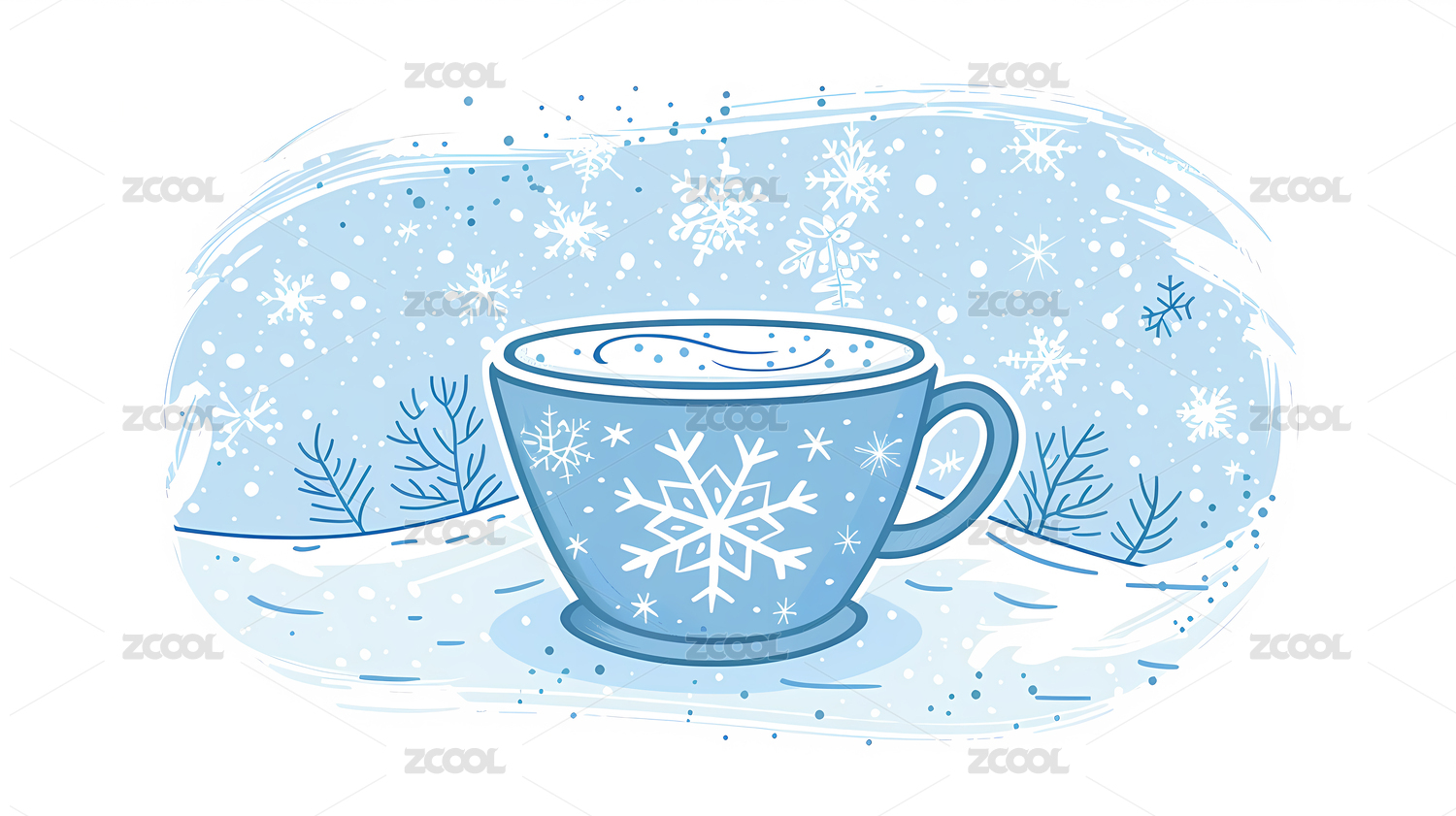 冬天,咖啡,背景,插画,雪地,杯子,图案,装饰,雪花,冬季