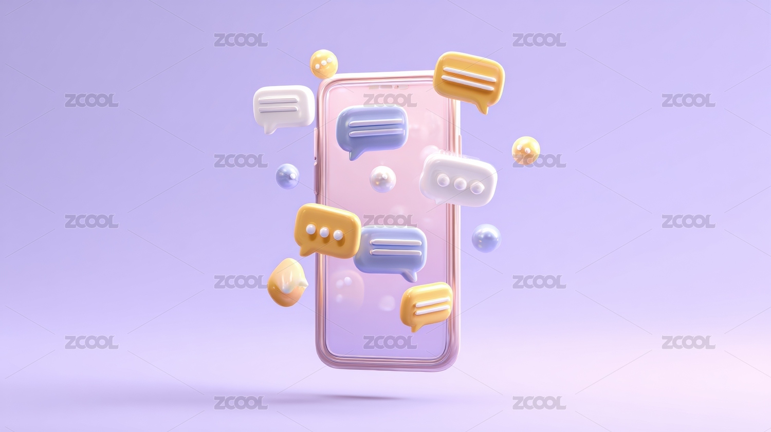 科技,插画,手机,现代,信息,悬浮,3D,卡通,社媒,聊天