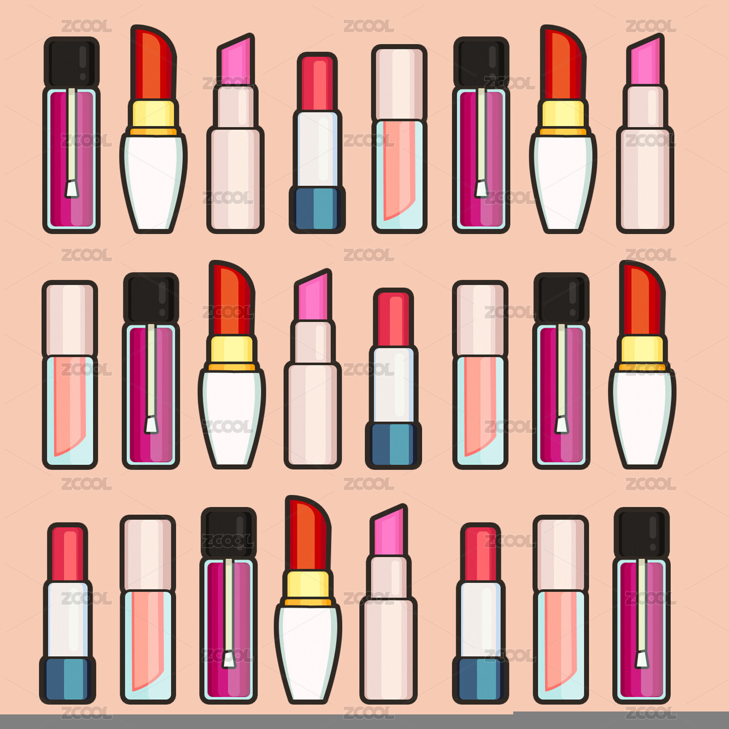多种化妆品交错排列的插画背景