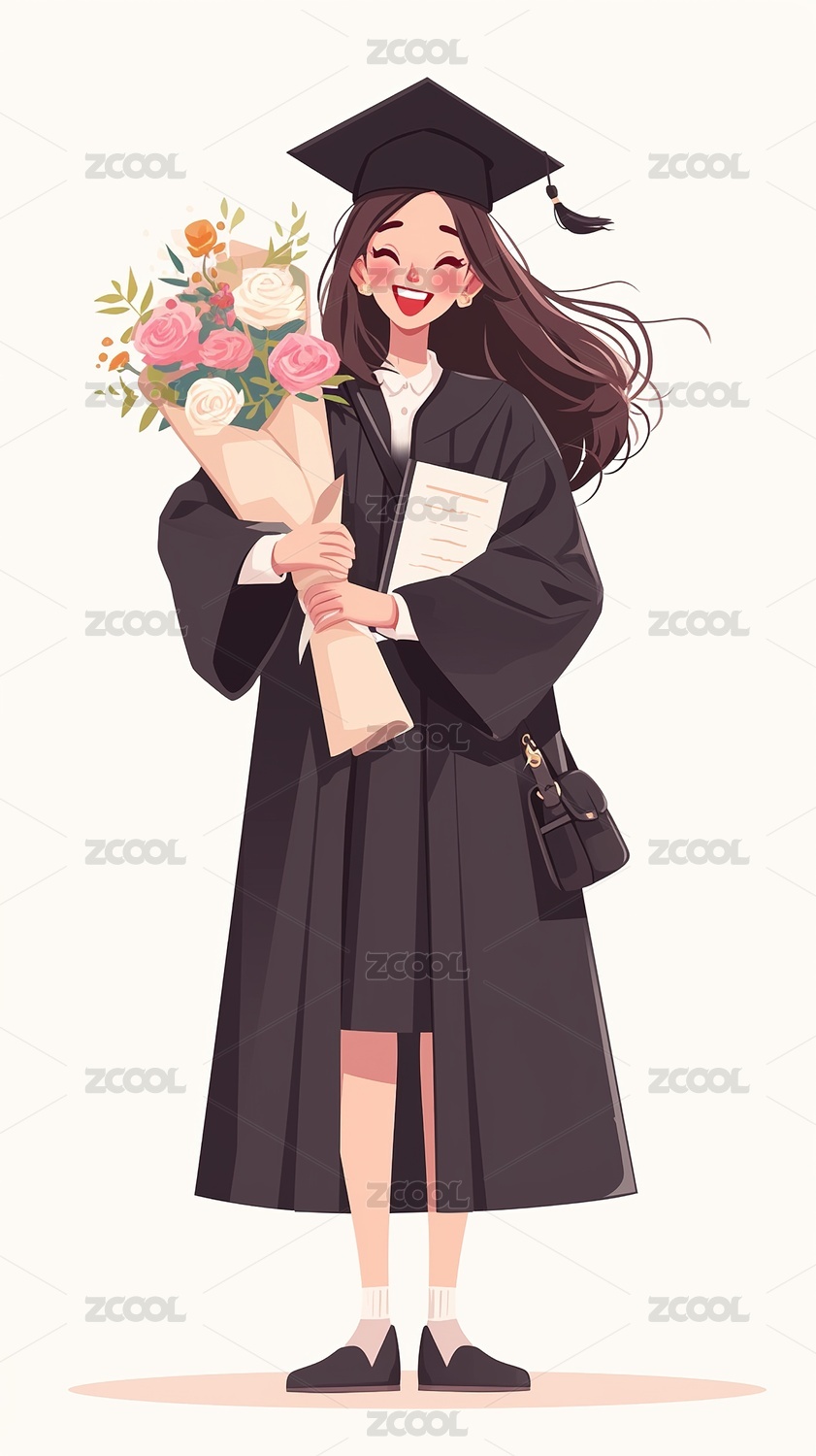 毕业季毕业捧花的女学生