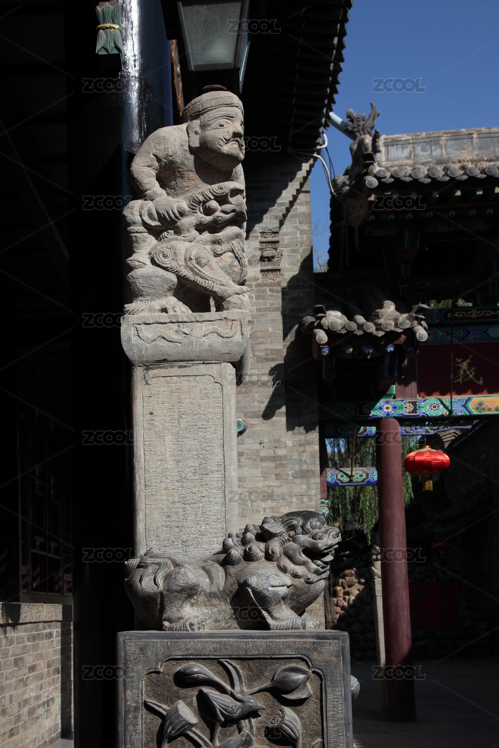 建筑,古代,青瓦,雕刻,屋脊,兽头,龙头,牌楼,灯笼,院落