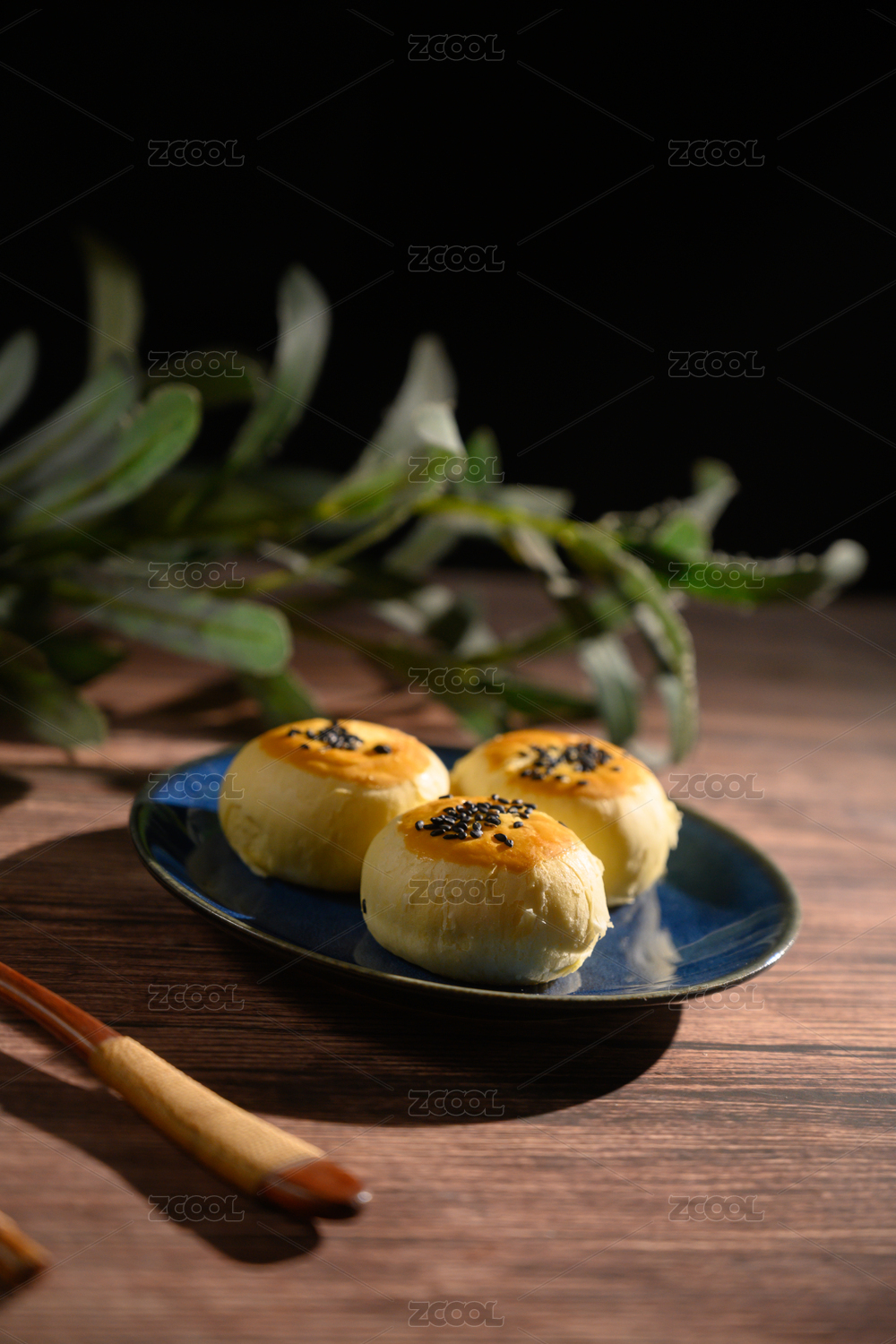 桌面上的盘子里的美味可口的蛋黄酥
