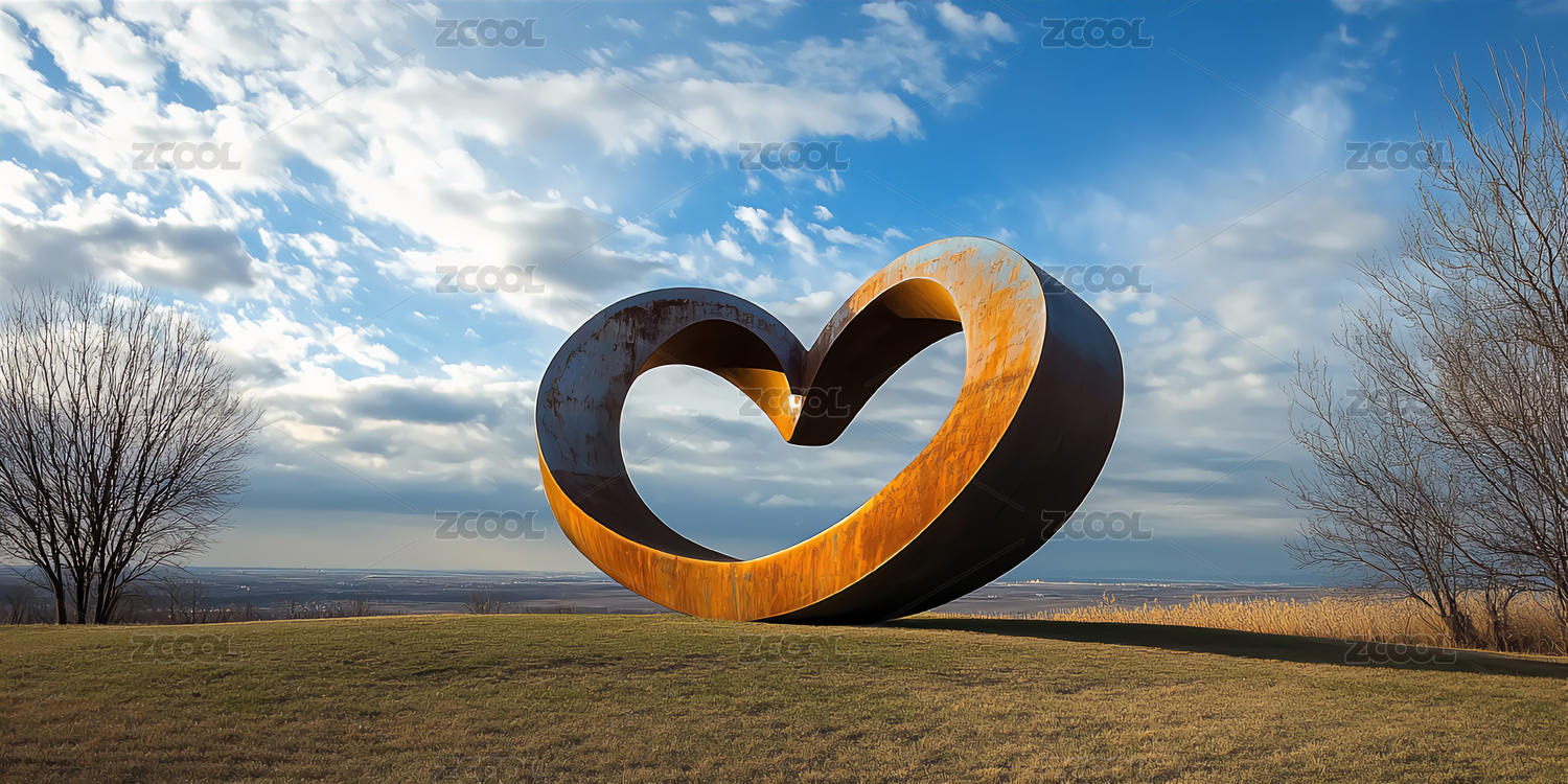 天空,云,远山,无人,户外,逆光,植物,图形,心,衬托