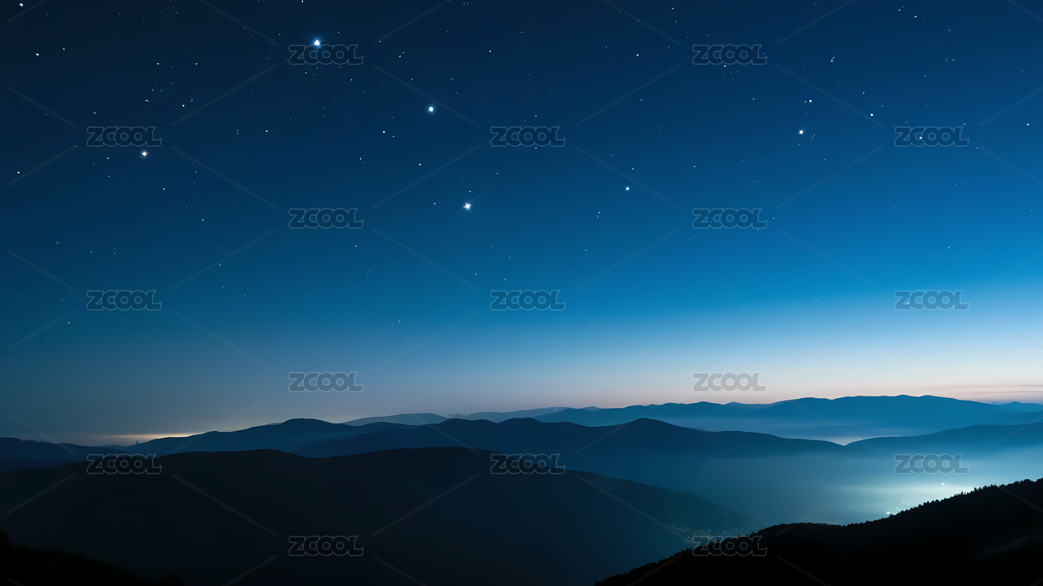 夜晚浪漫蓝色星空下星星闪亮景色的背景