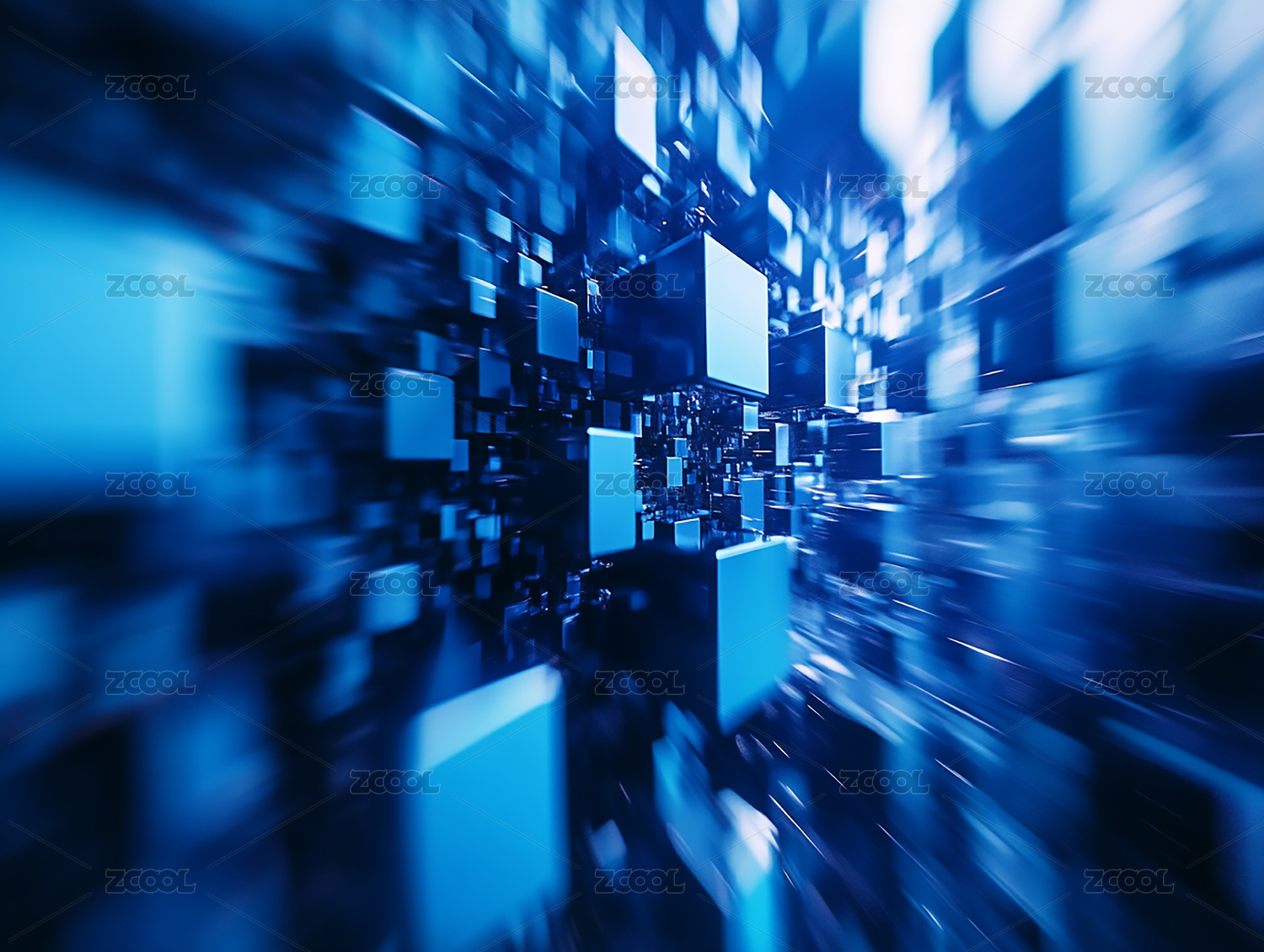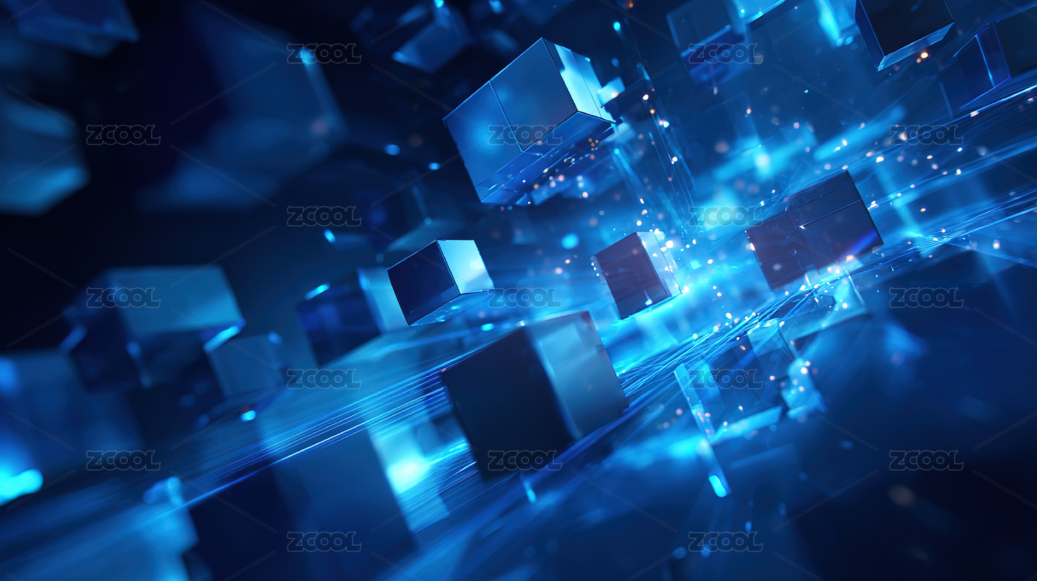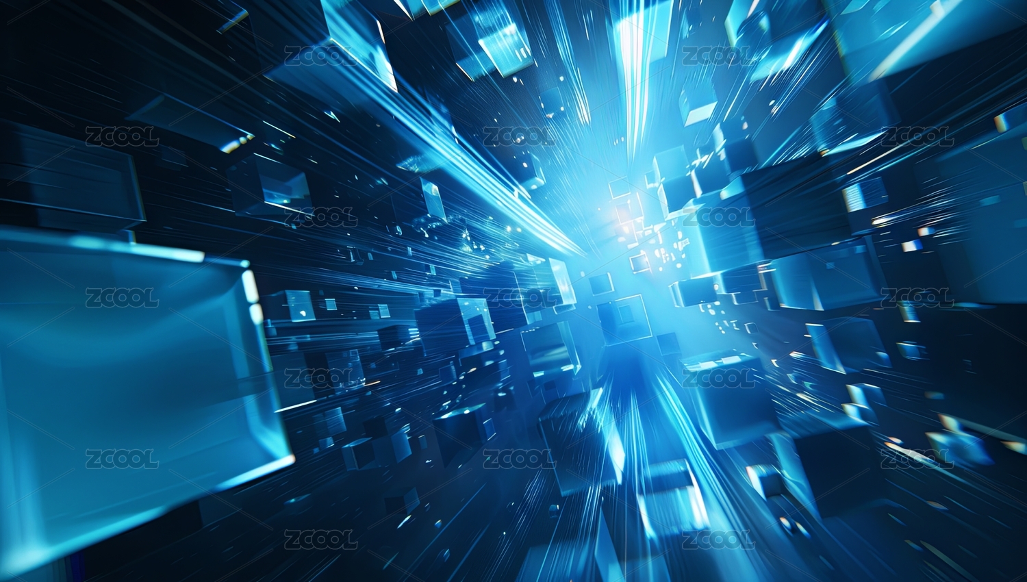 蓝色发光方块和光线,数字科技未来概念背景