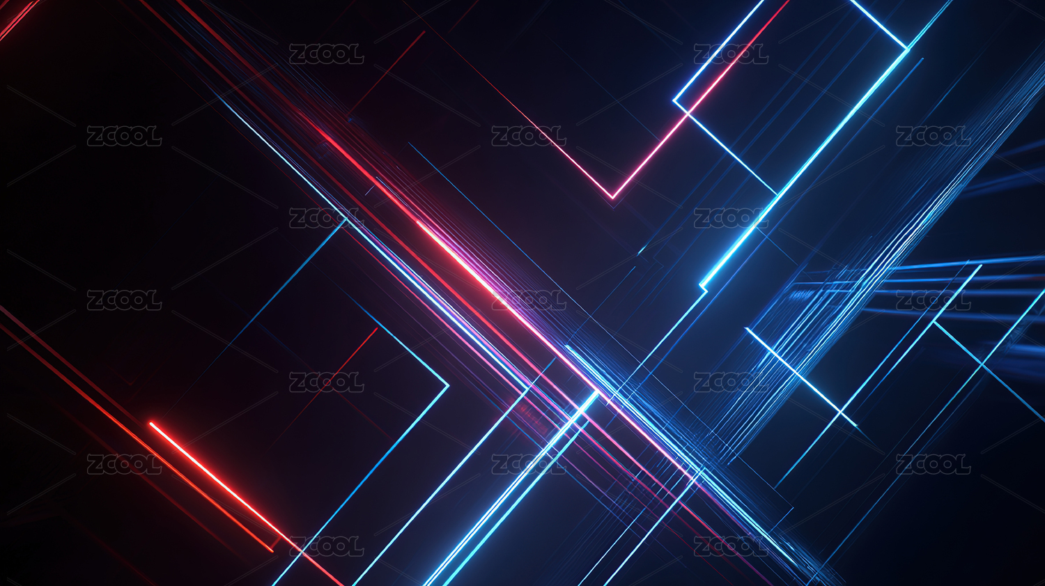 抽象霓虹灯发光几何线条3D渲染商务背景